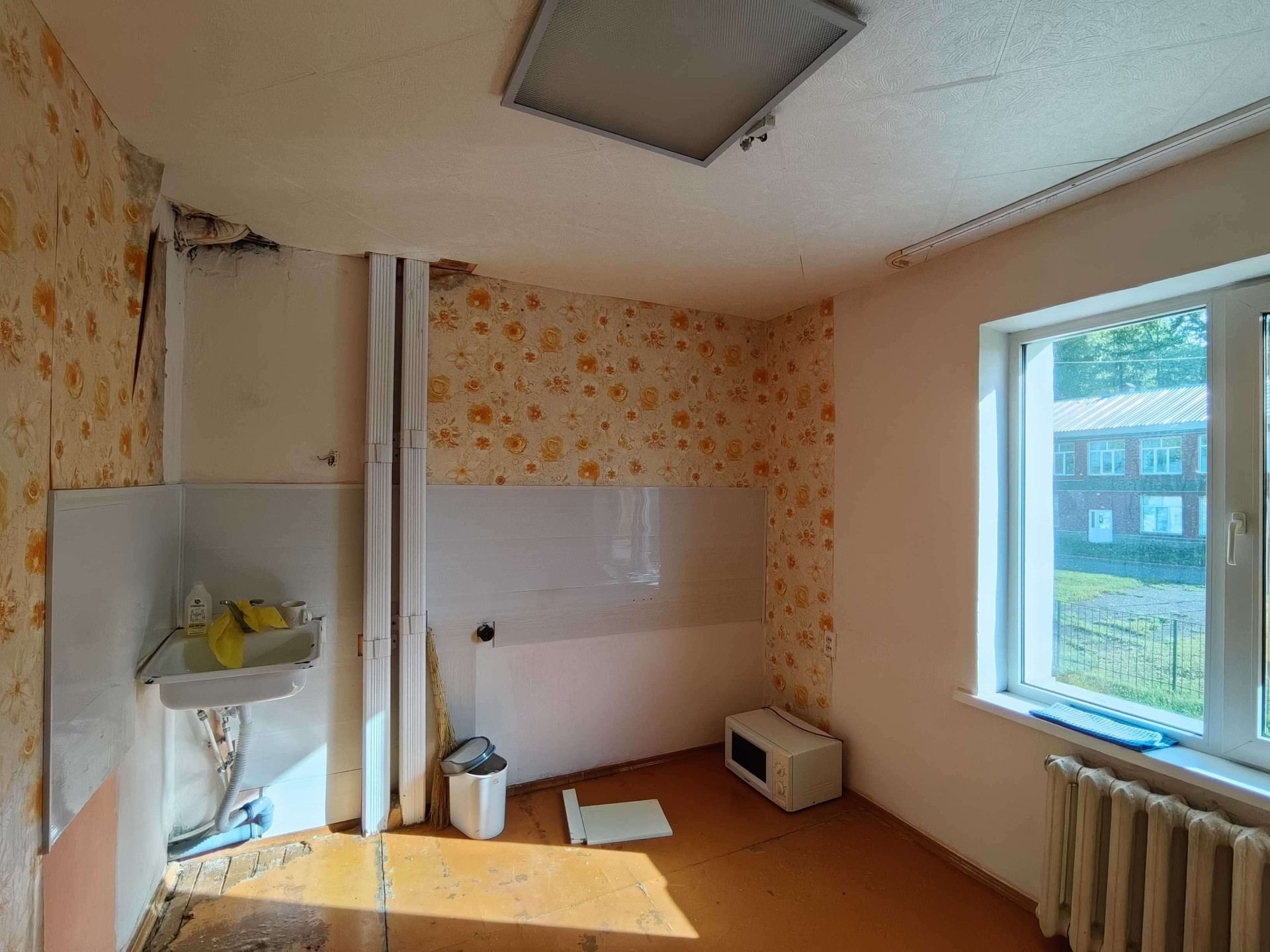 Установлены хорошие стеклопакеты, небольшая уютная комната и просторная кухня 9,2 кв.м.(выложен фартук из кафеля), кафель в совмещенном санузле.