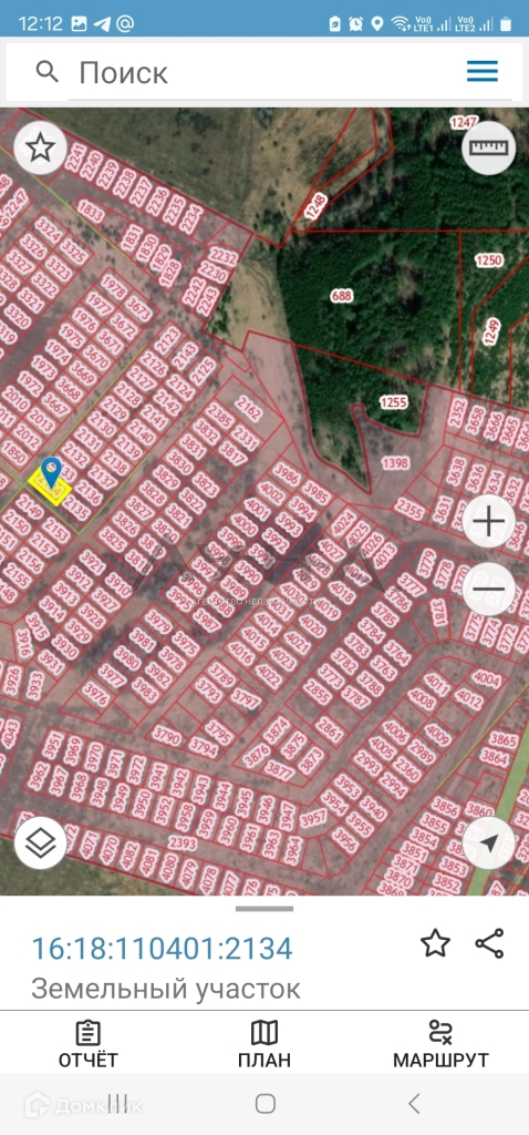 Лесополоса в 350 метрах от участка. Участок расположен в 150 метрах от территории одного из застройщиков.