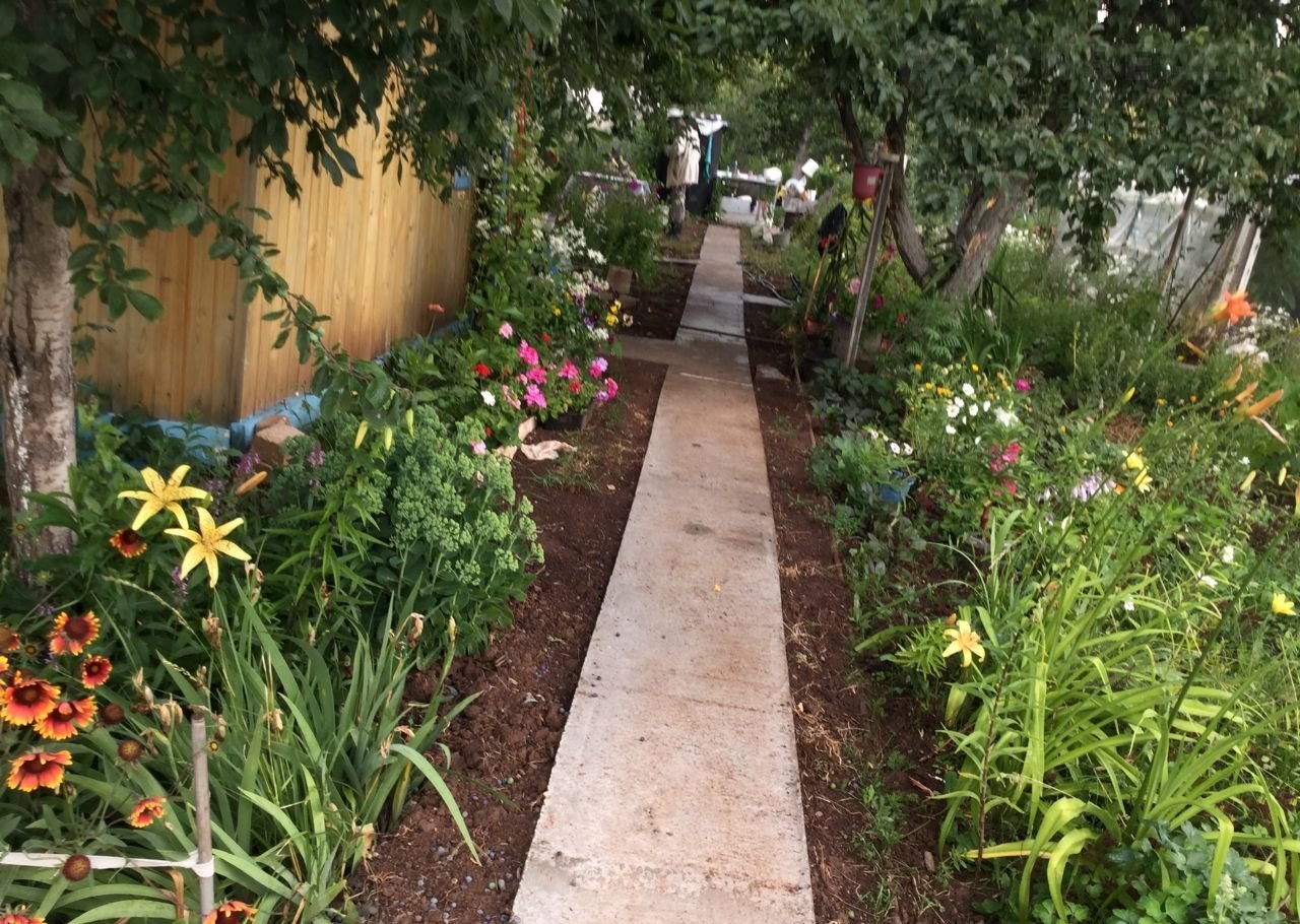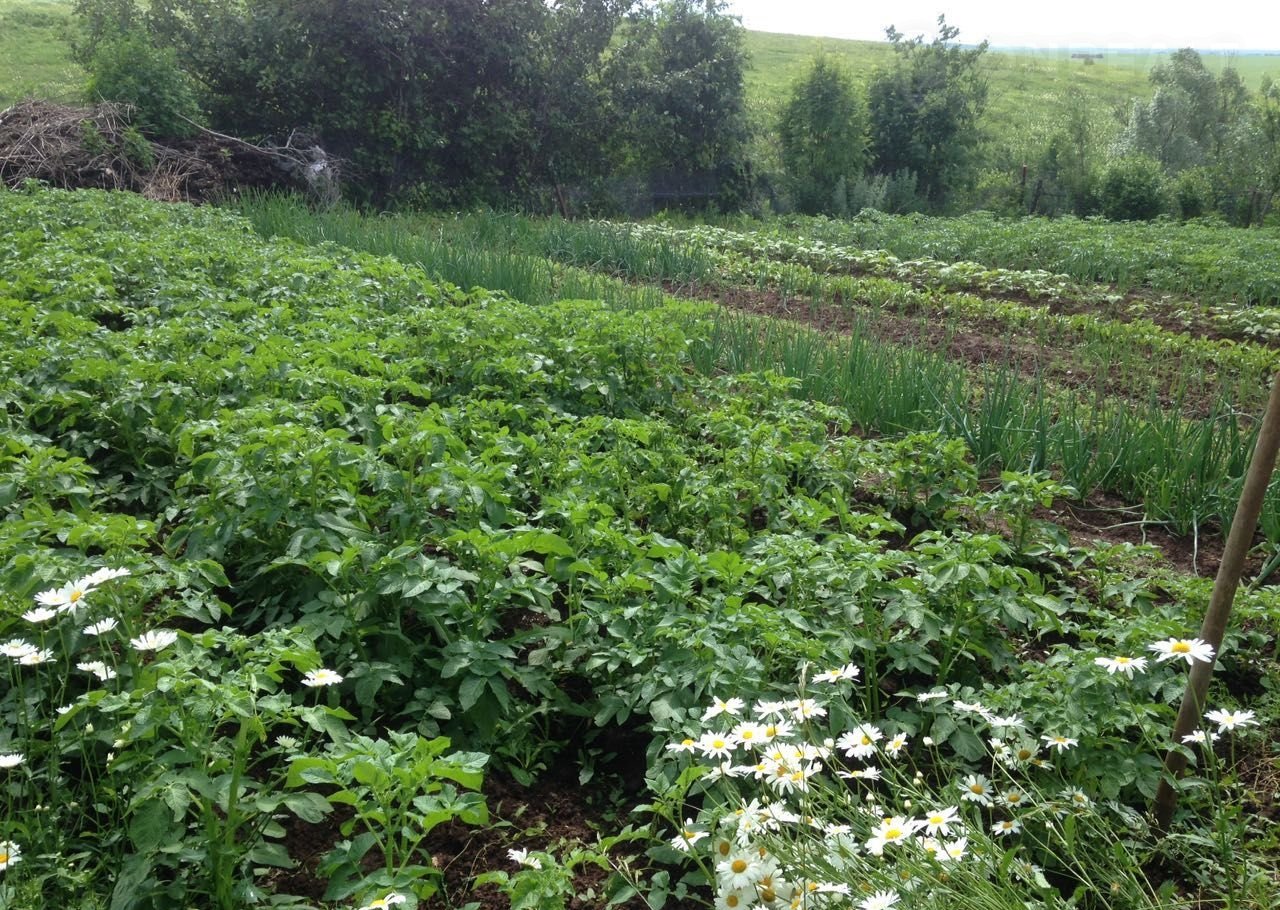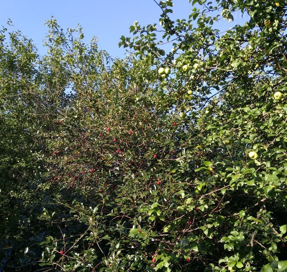 Растут 5 сортовых яблонь («Башкирская красавица», «Антоновка»), груша, вишня, облепиха, слива, малина, крыжовник, чёрная и красная смородина, виктория.
