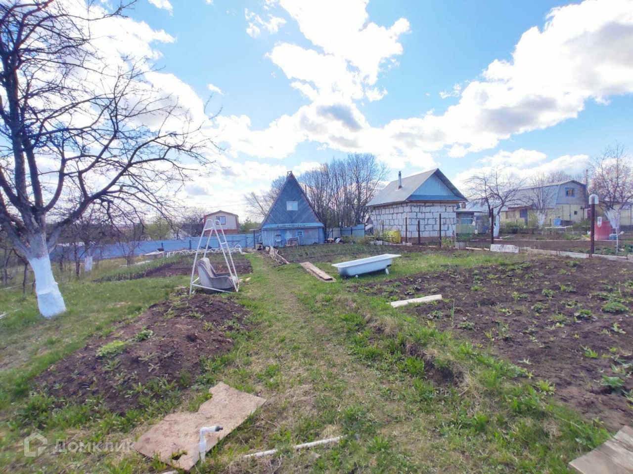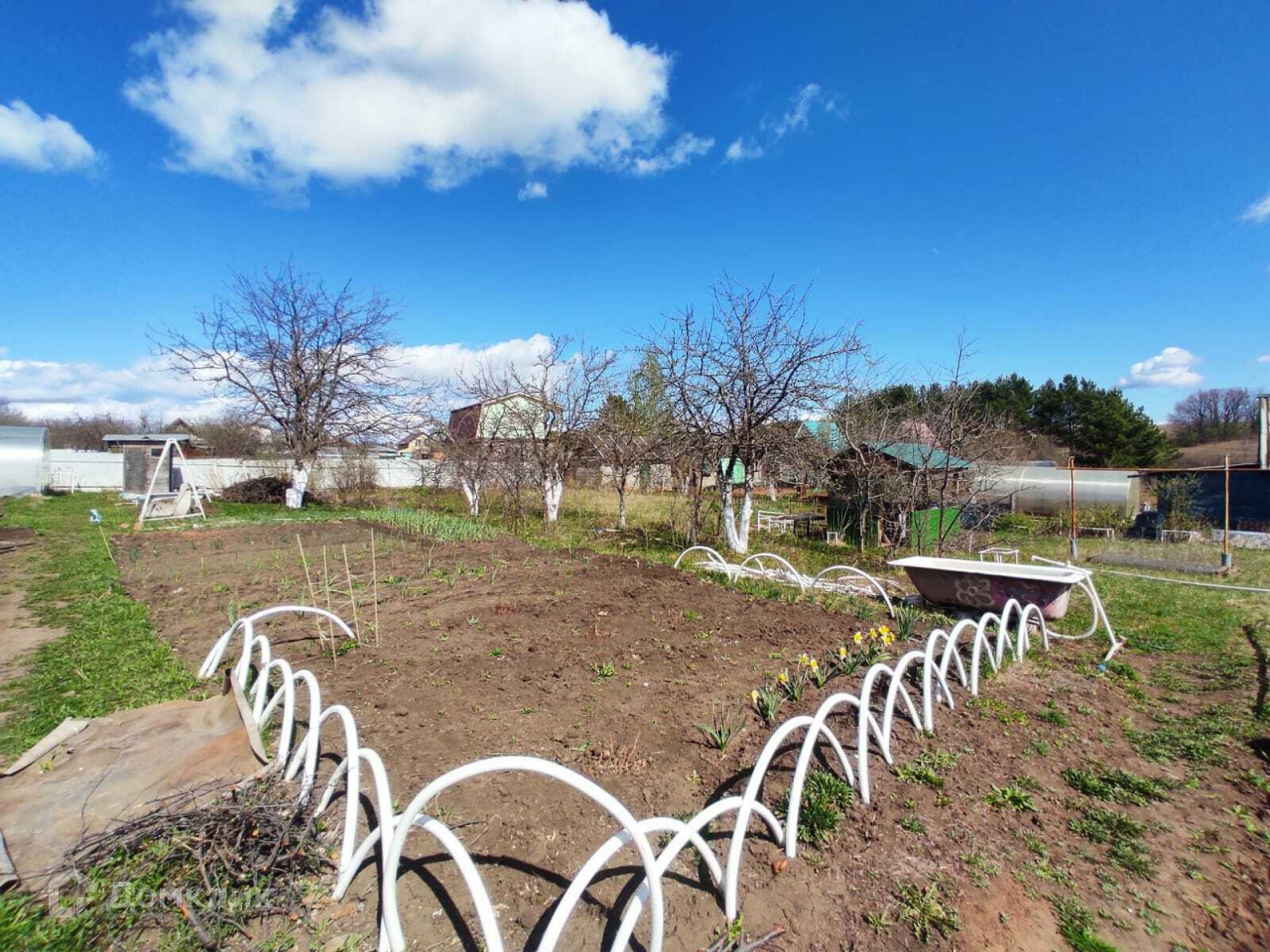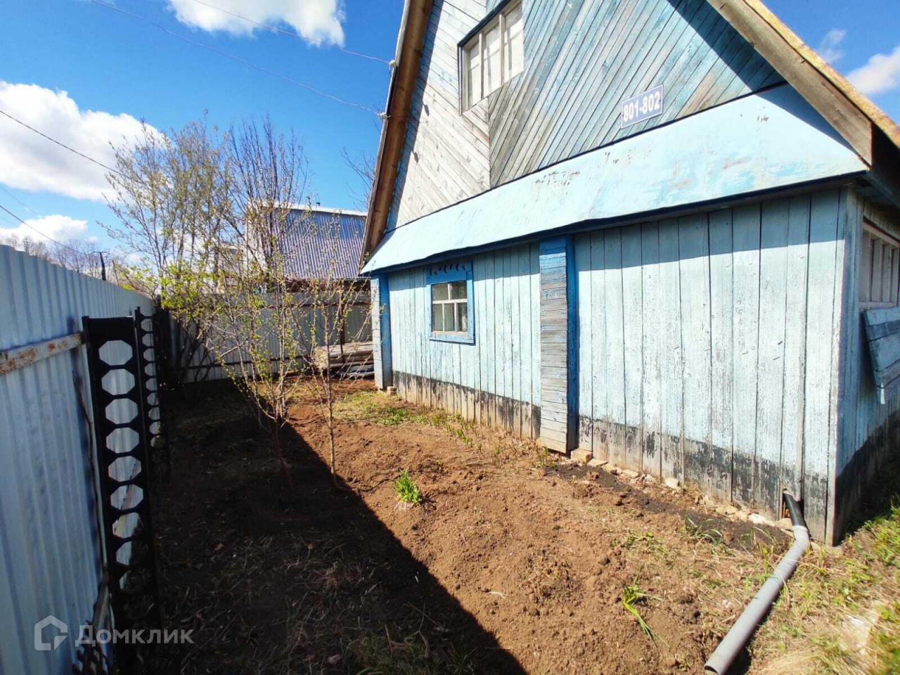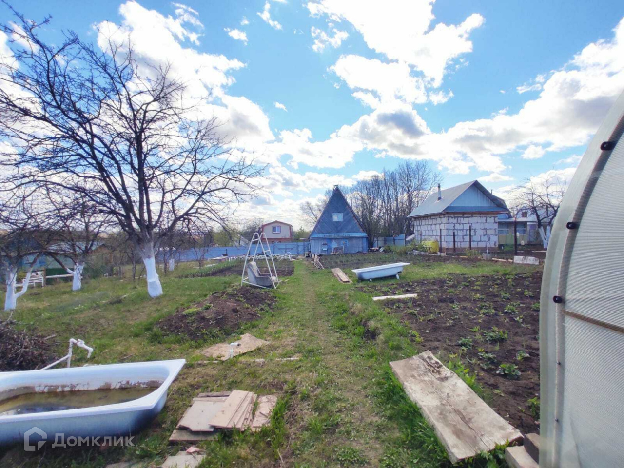 На участке есть хозблок из профнастила, уличный туалет, беседка, место для мангала.