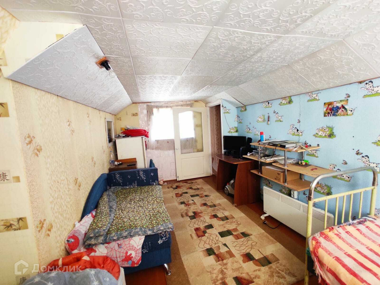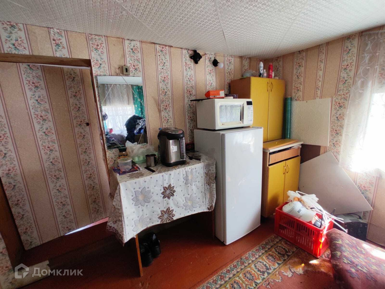 Домик обшит снаружи вагонкой и покрашен, изнутри ГКЛ и обклеен обоями.