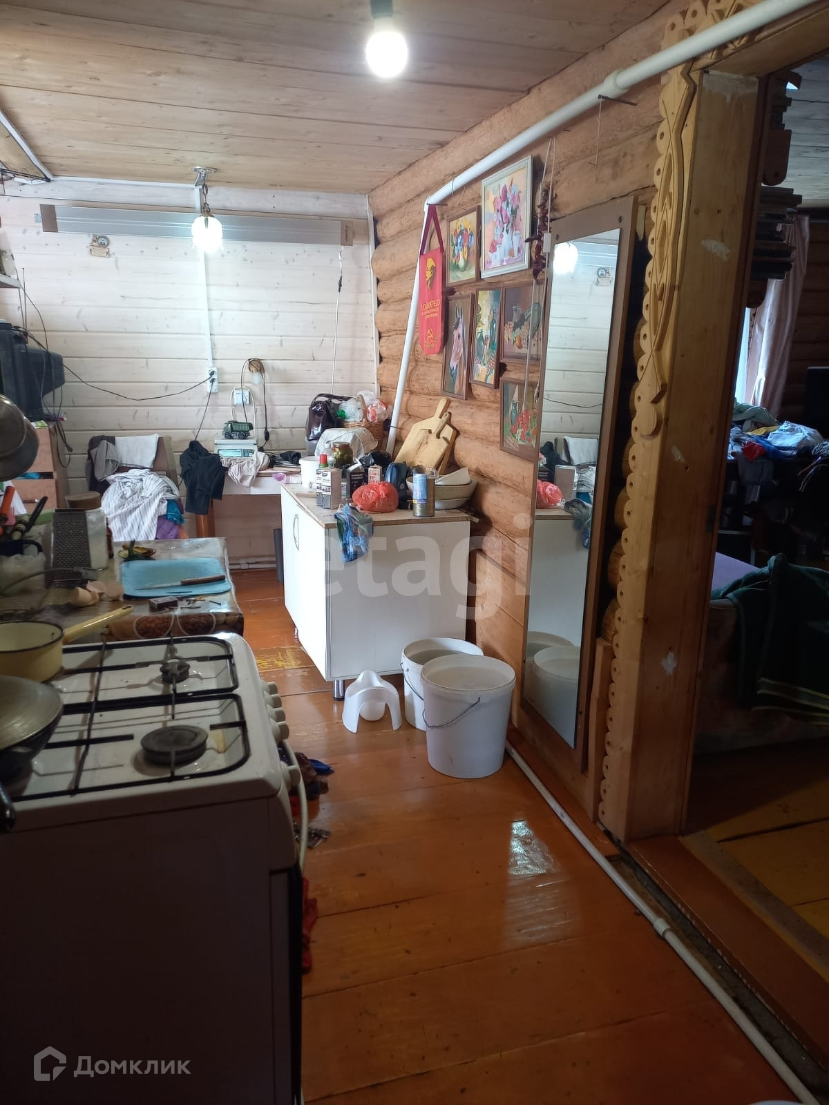 - Добротный дом из бревна, общей площадью 60 кв.м. Дом оборудован печным отоплением, электричеством, водопроводом.