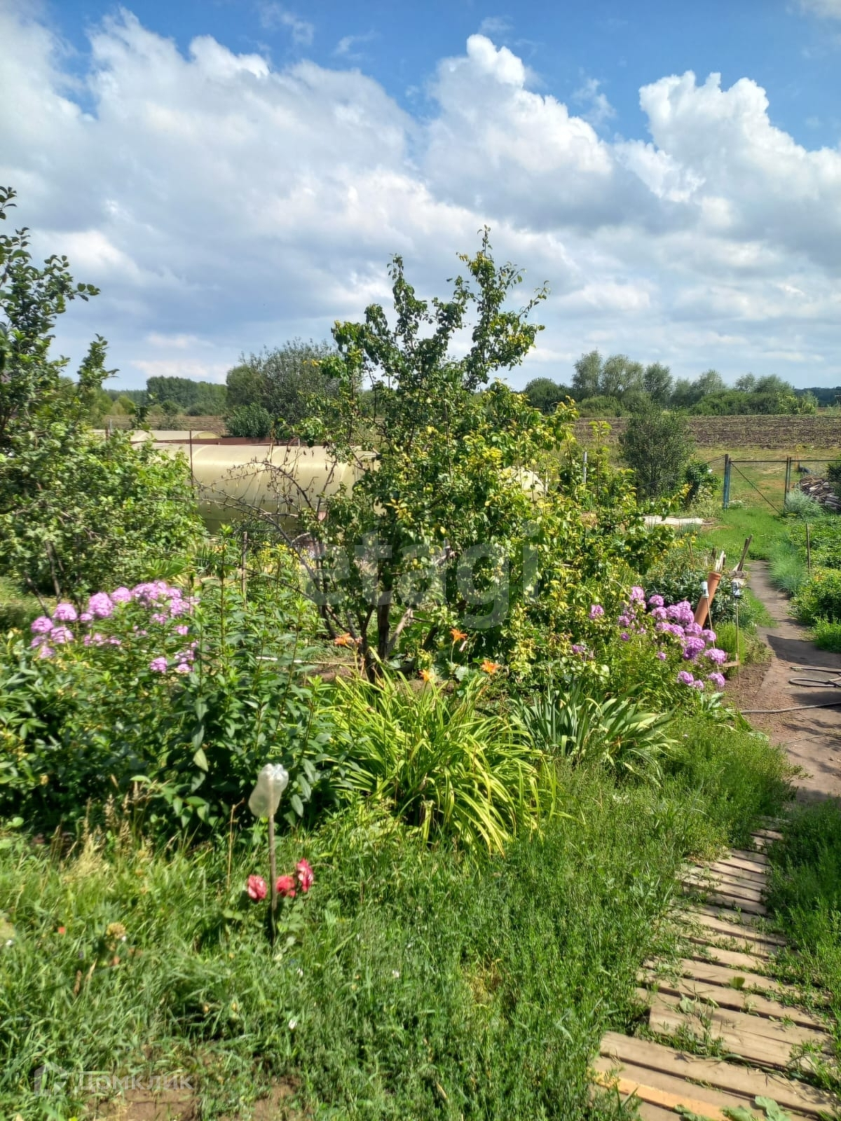 - За участком простирается большое поле, где можно собирать ягоды и грибы.