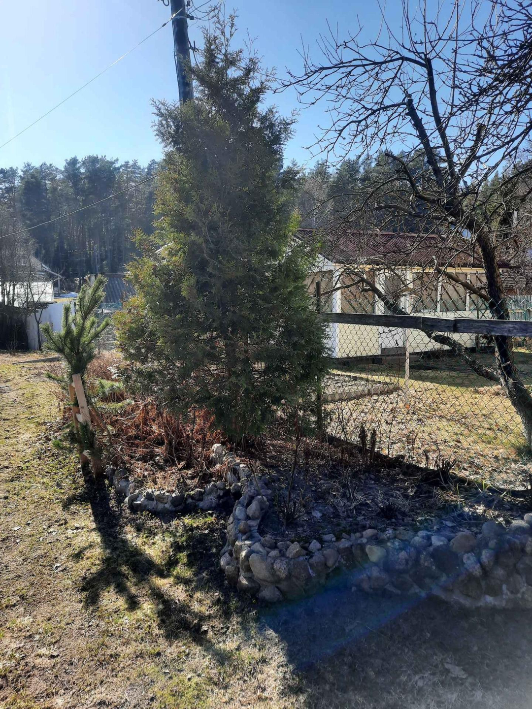 Рядом сосновый лес, ягоды и грибы за участком.