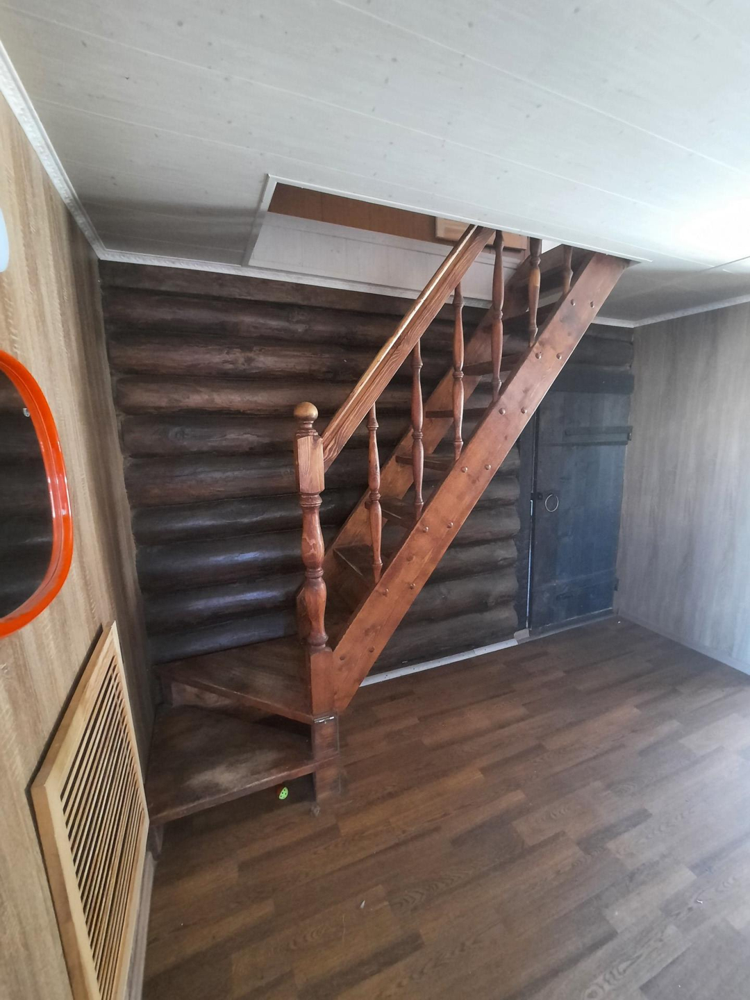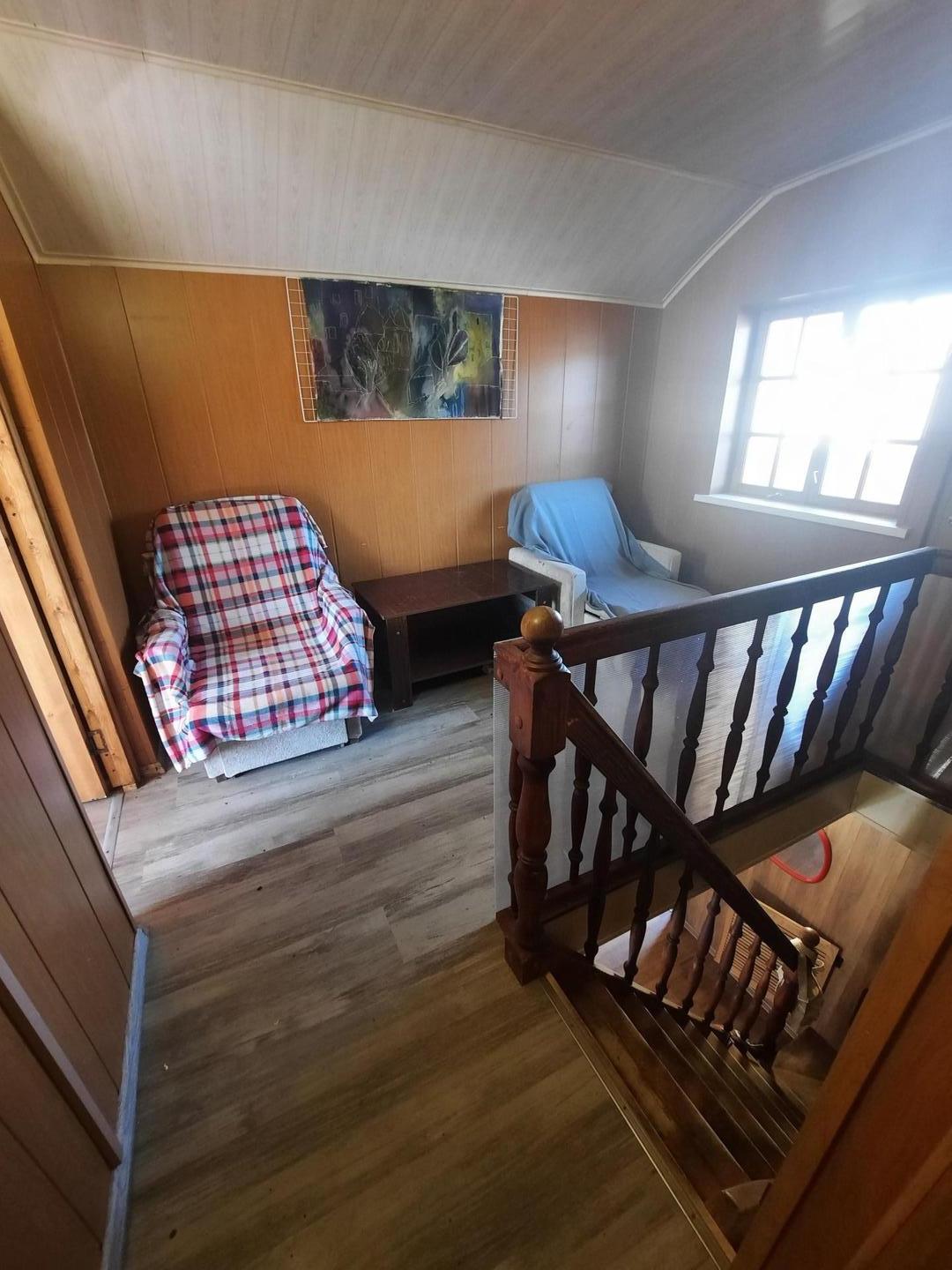 На первом этаже кухня, комната, холл, трасса.