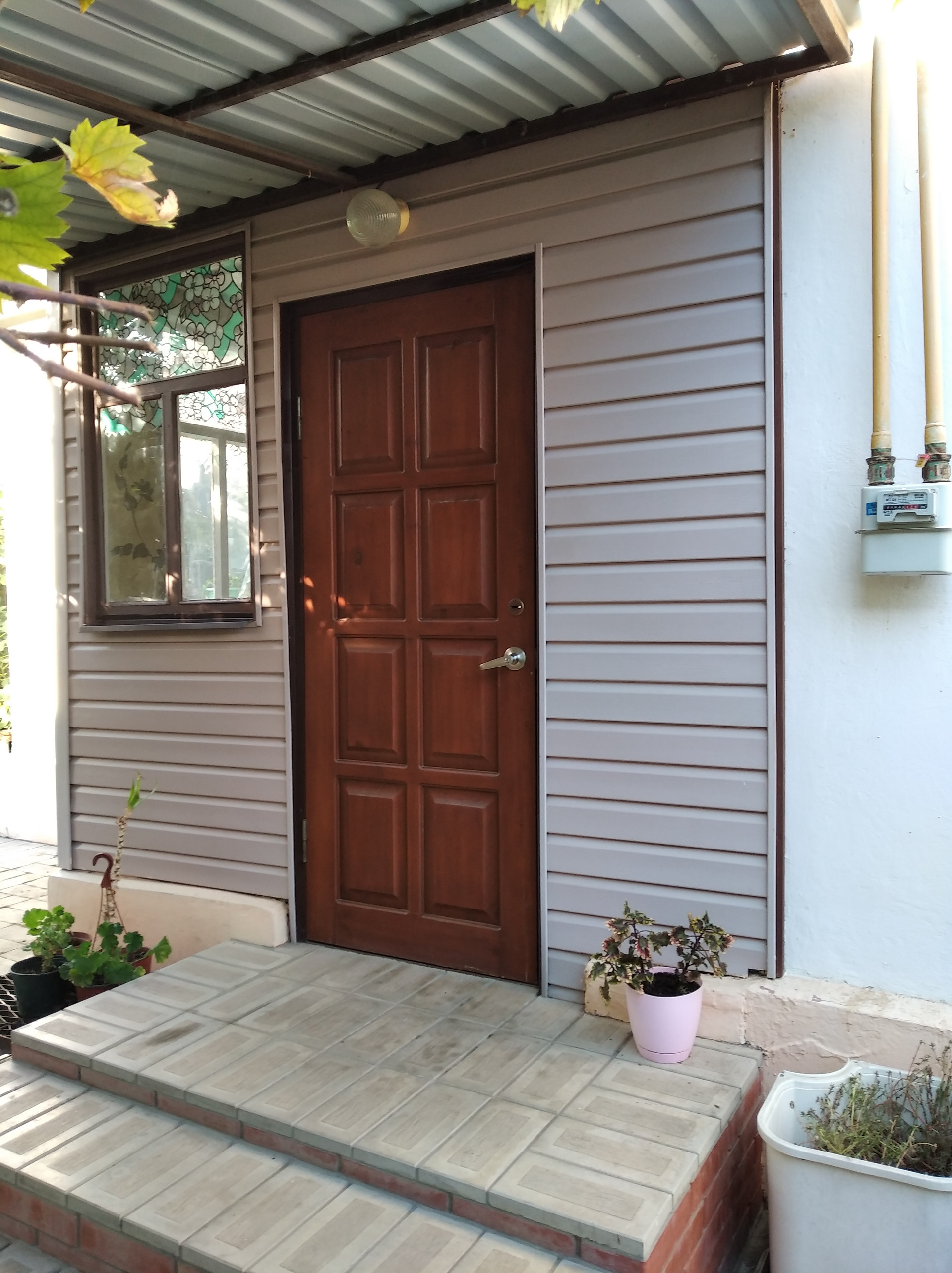 Во дворе гараж, бывшая летняя кухня с подведённым газом, фруктовые деревья (вишни, черешня, абрикос, яблони), ирга, виноград (несколько сортов), малина, ежевика, инжир, лекарственные растения (пустырник, мята, поздника, эхинацея), цветник.