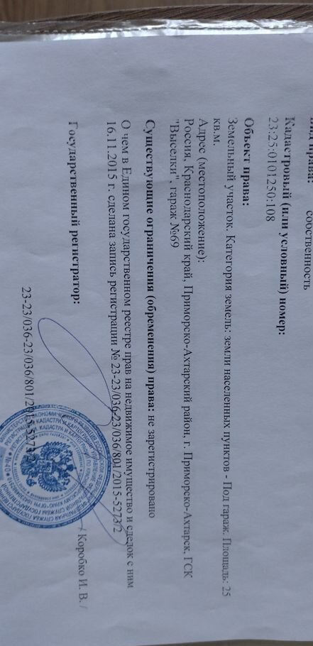 Кирпичный гараж, 25 м2, на продажу в Приморско-Ахтарске, территория ГСК Выселки, с77