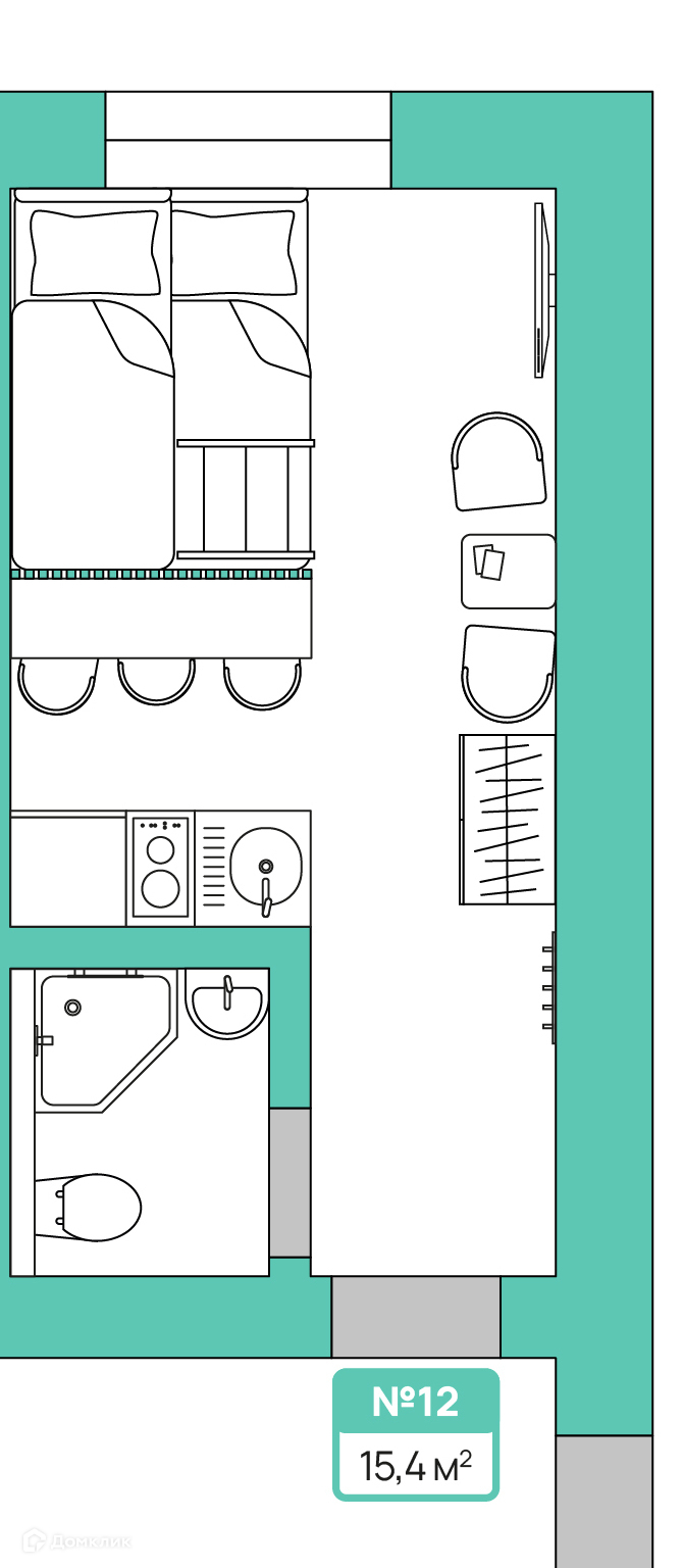 Общая площадь 15.4 м2