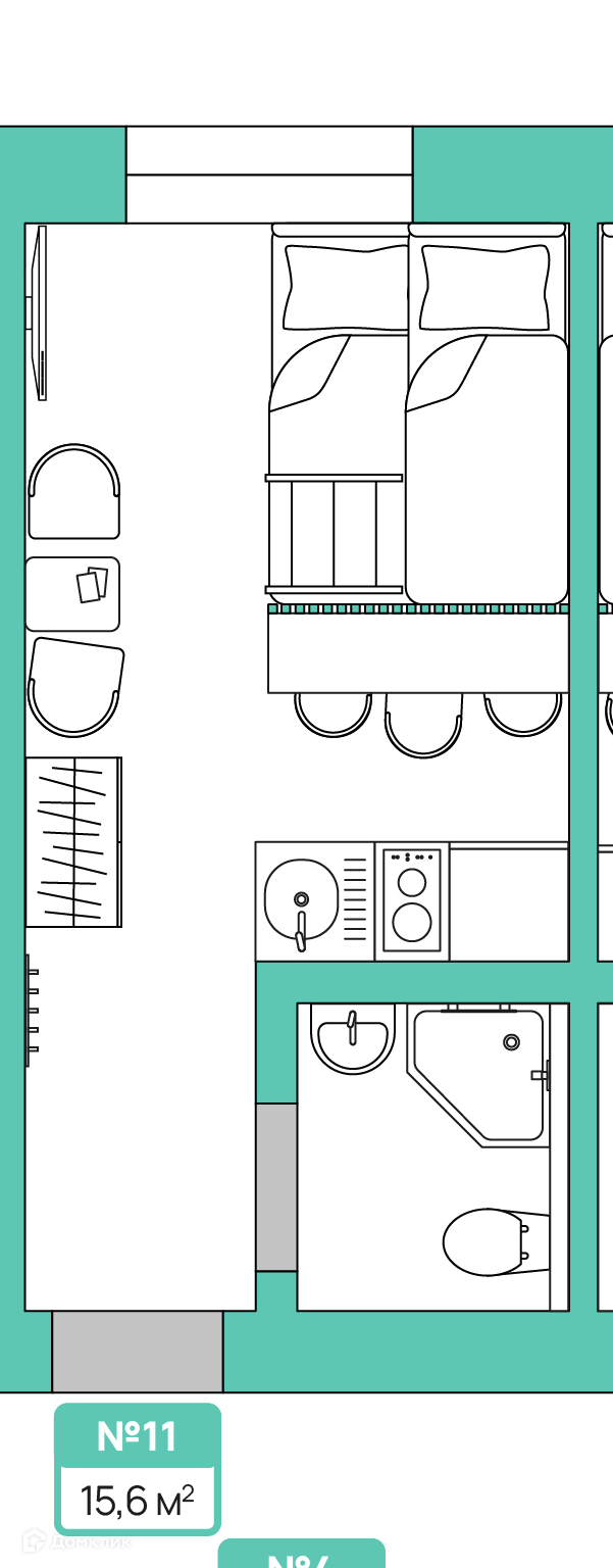 Общая площадь 15.6 м2