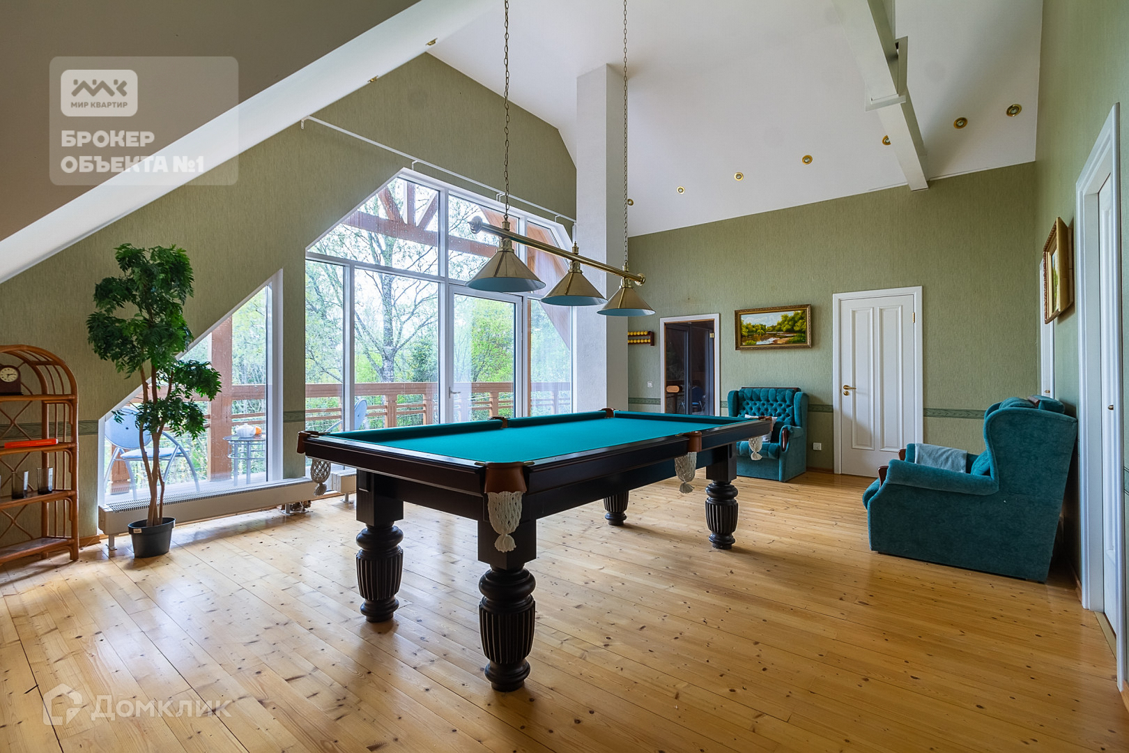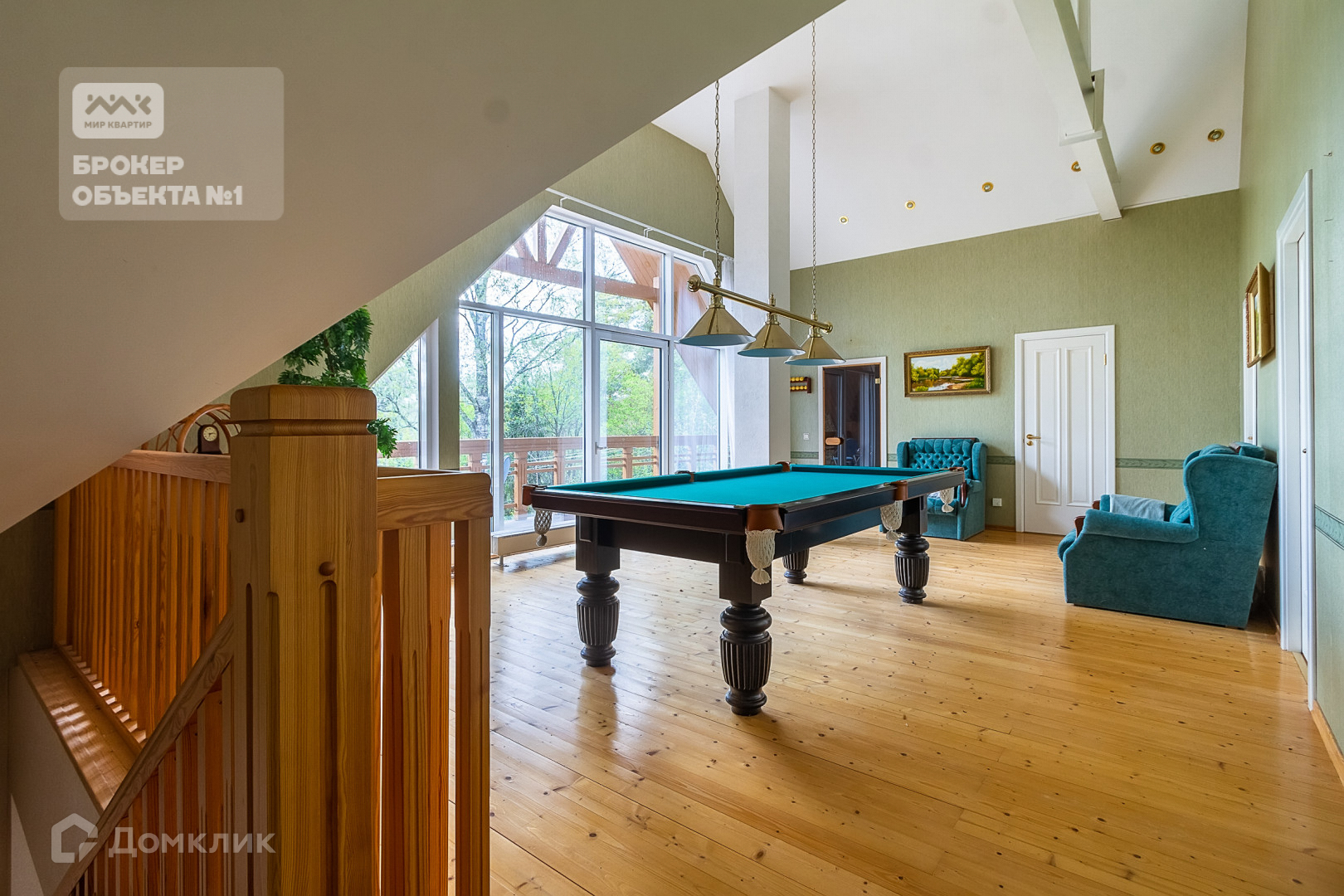 -на втором этаже-бильярдная с выходом на террасу, две спальни, сауна и санузел.