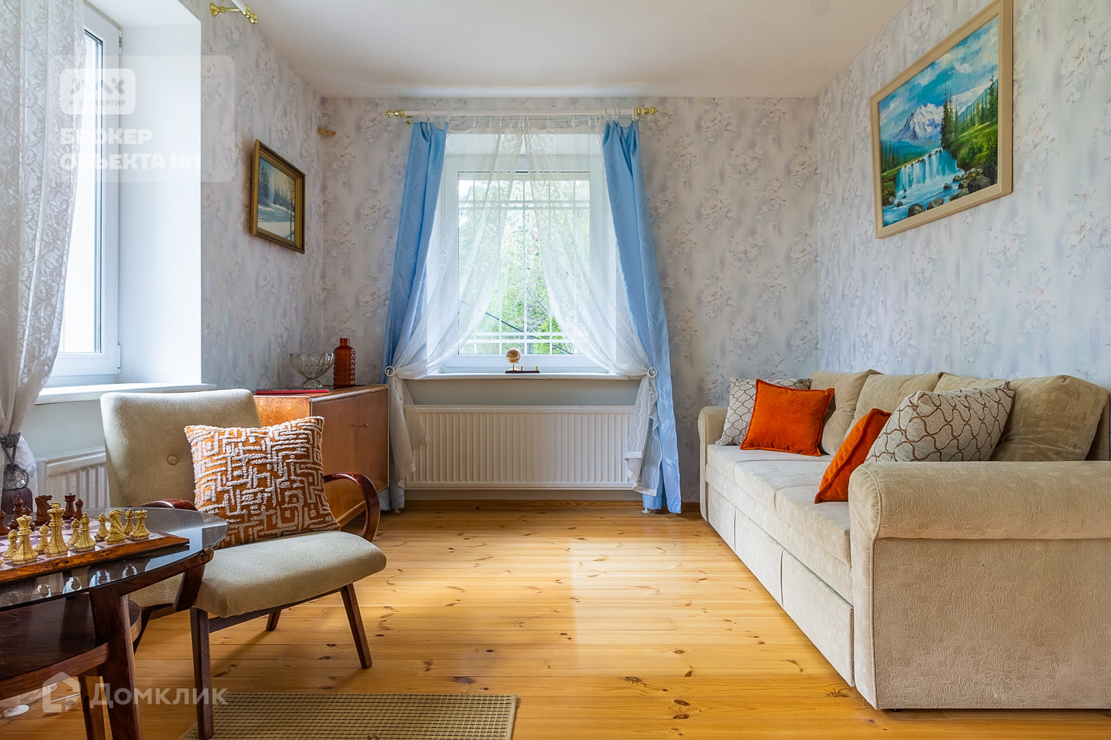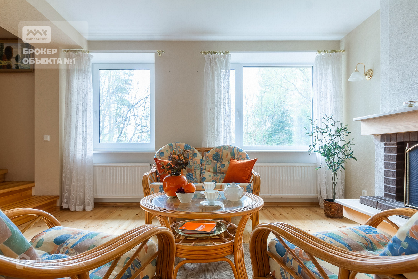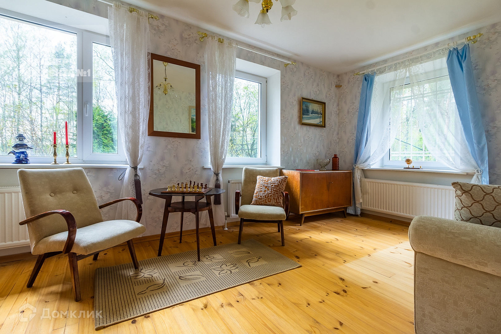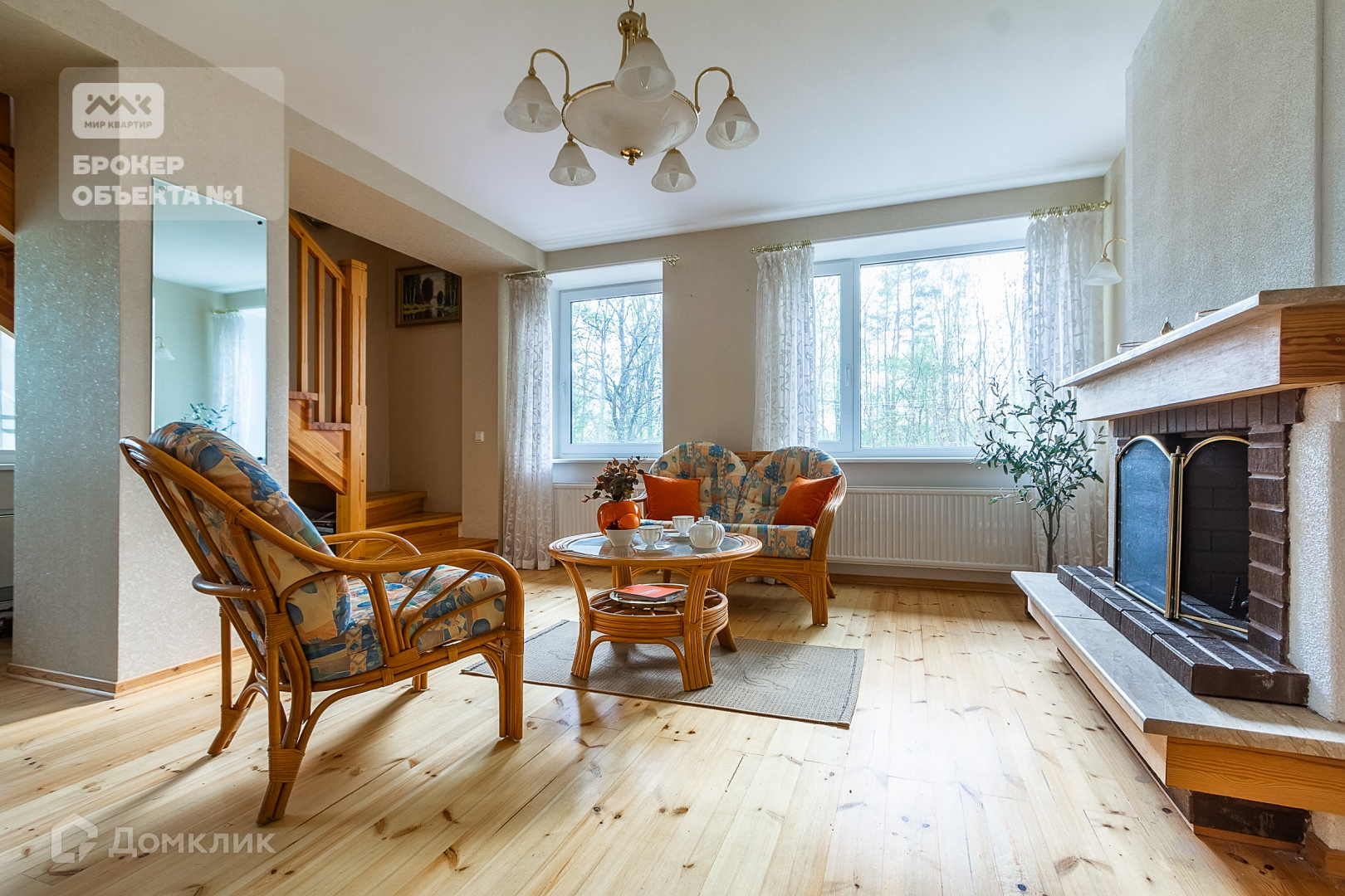 -на первом этаже-гостиная с дровяным камином, кухня-столовая, две спальни и санузел