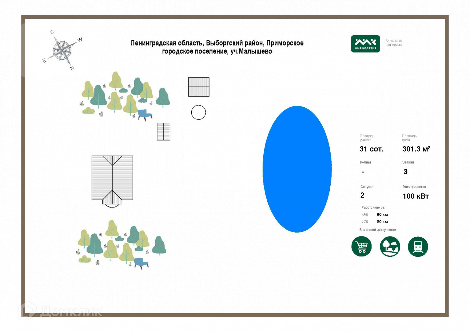 Владения в собственности, окружены великолепной природой-хвойные леса, богатые грибами, ягодами. В пешей доступности большое озеро Пионерское, где круглый год обеспечена рыбалка.