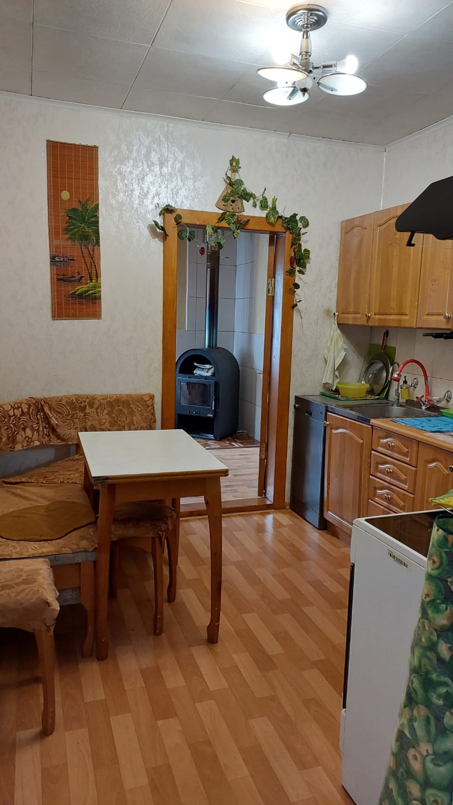 - На первом этаже  4 комнаты, хол, кухня, совмещенный санузел с душевой кабиной.