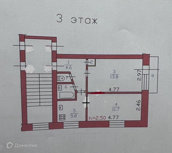 Высота потолков 2.5 м