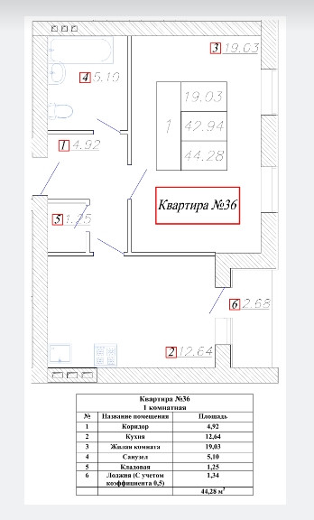 Общая площадь 44.28 м2