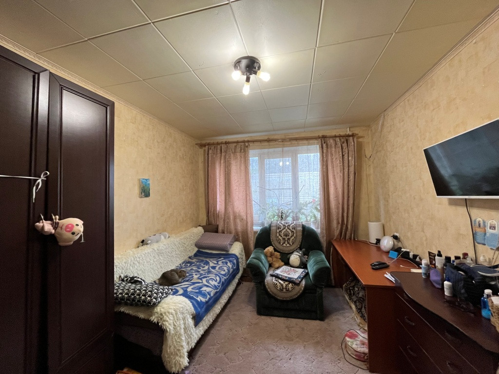 Квартира расположена на 1 этаже, общая площадь 53,3 кв.м, просторная кухня 8,6 кв.м, изолированные комнаты на разные стороны 17,2+12,8 кв.м, есть большая кладовка, установлены стеклопакеты, в остальном квартира в предремонтном состоянии.