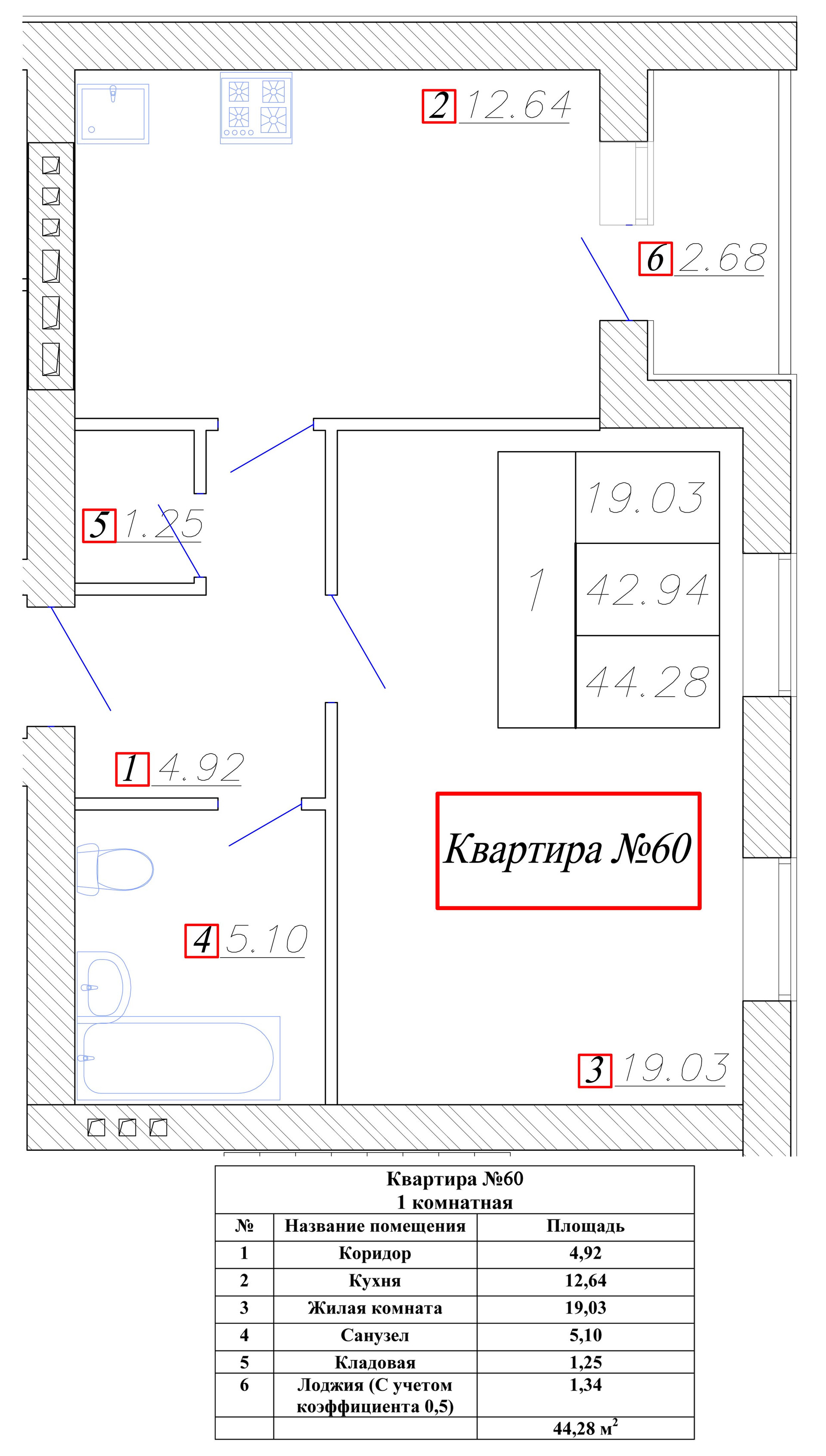Общая площадь 44.1 м2