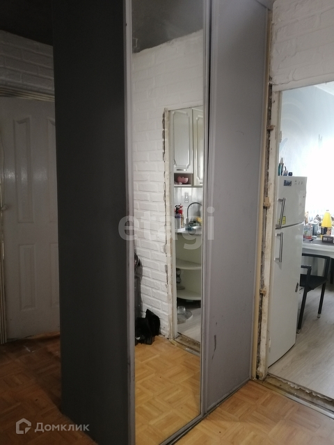 Новым хозяевам остается кухонный гарнитур и встроенный шкаф с большими зеркалами.