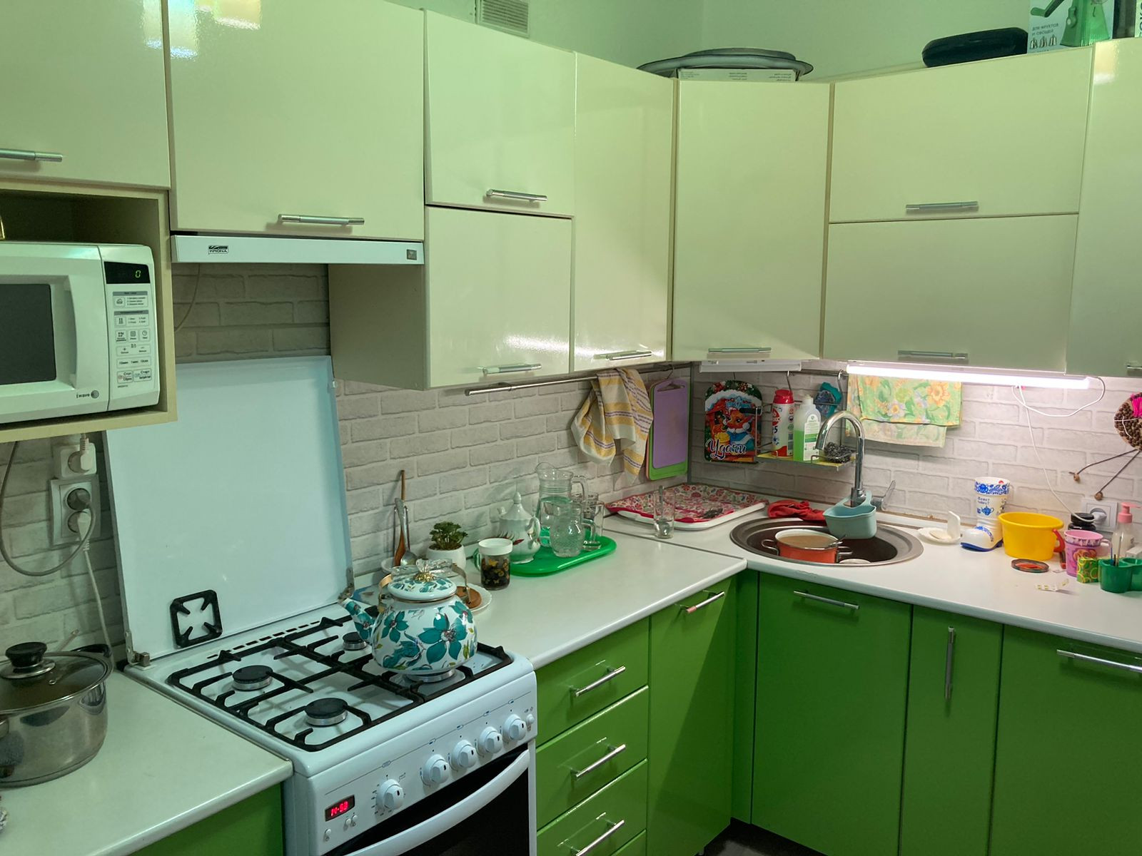 Квартира тёплая, уютная. В квартире сделан косметический ремонт. Небольшая,но уютная кухня. Кухонный гарнитур остается. Сан.узел совмещен, в плитке, новая ванна.При продаже в квартире остаётся: кухонный гарнитур с встроенной техникой, стенка и шкаф. Можно заезжать и жить.