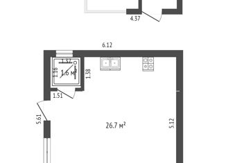Общая площадь: 34.6 м2