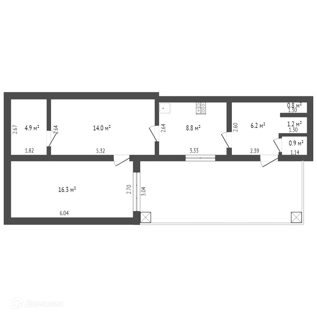 Общая площадь 53.1 м2