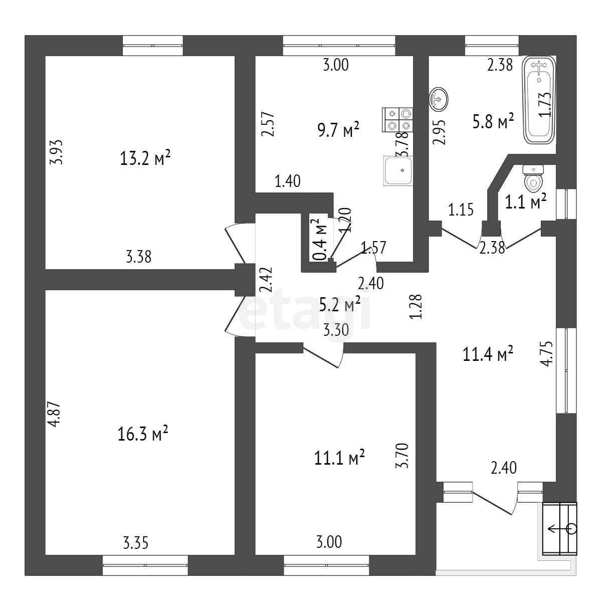 Общая площадь 74.2 м2