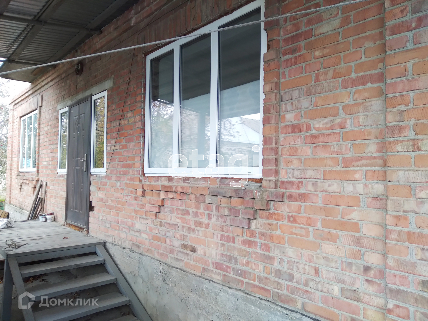 Материал стен - кирпич, все перекрытия - бетон, сейсмопояса. Железная дверь, все окна пластиковые. Большой гараж в доме. Просторный двор с навесом, можно ставить машину. Ухоженный сад с сараем и капитальным подвалом.