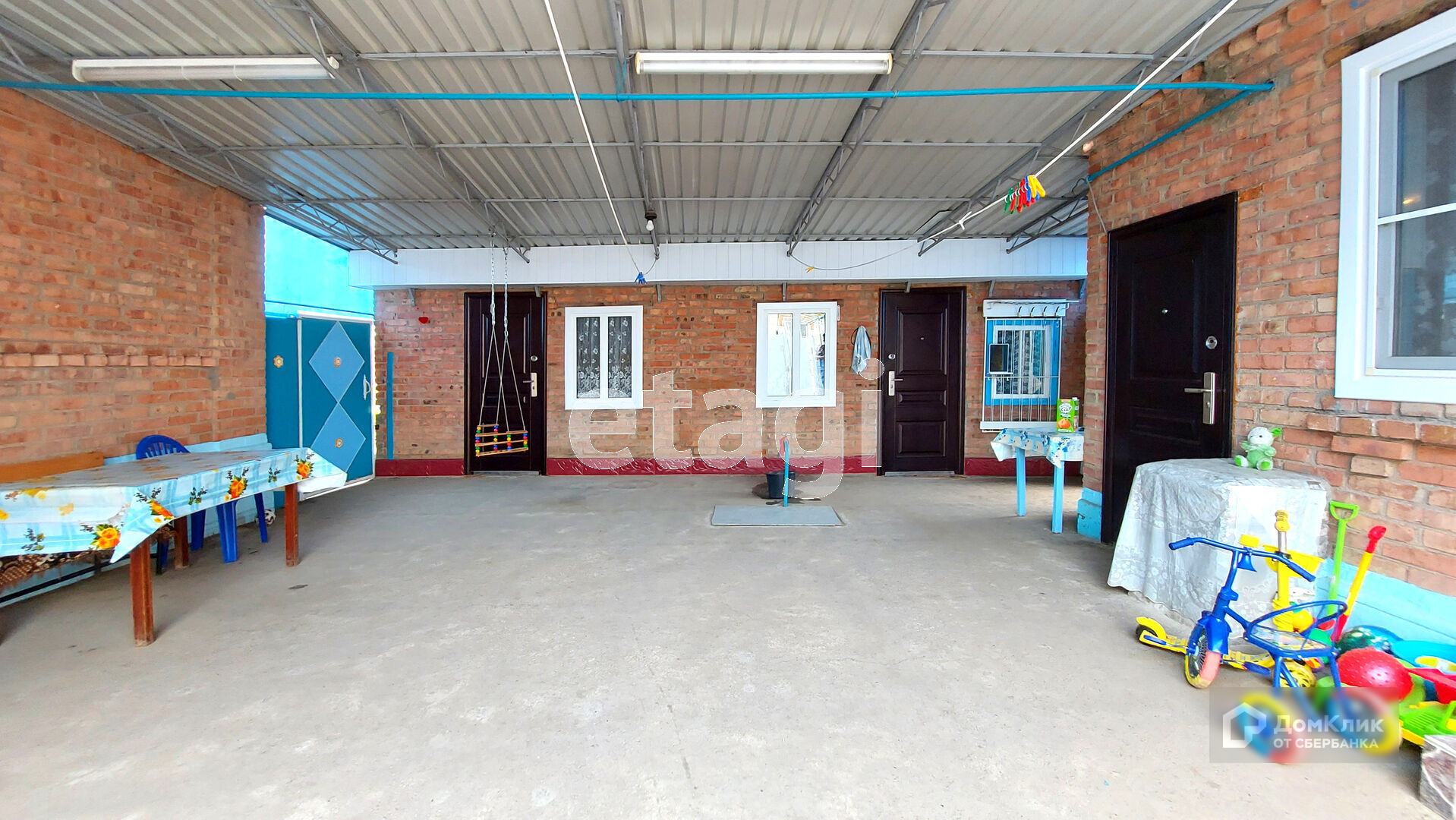 Крыша дома и времянки шиферная. Все окна заменены на пластиковые, двор заасфальтирован и накрыт навесом. Имеются хозпостройки и гараж. В доме установлен новый котёл, заменены все водопроводные трубы на пластиковые.