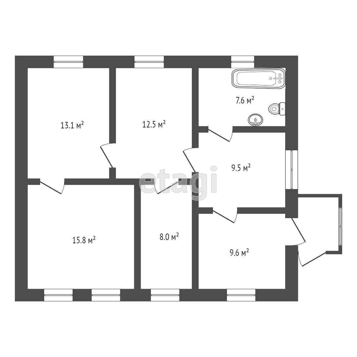 Общая площадь 76.1 м2