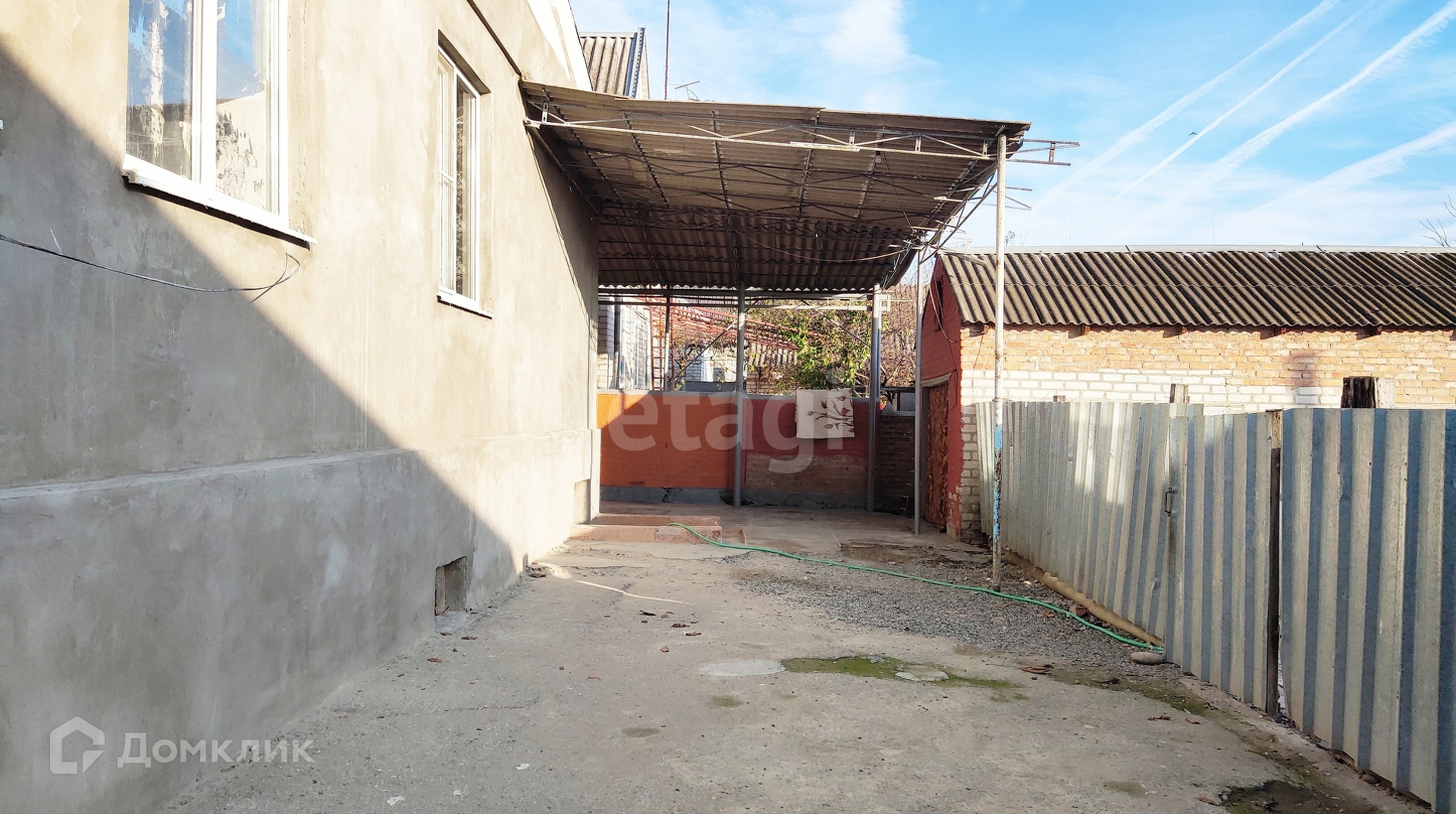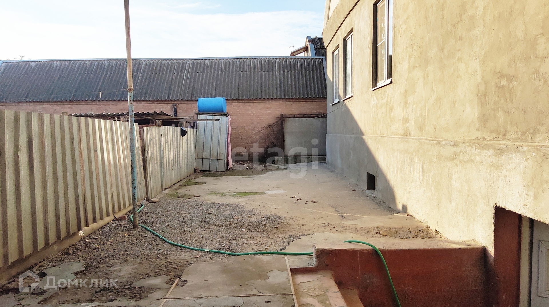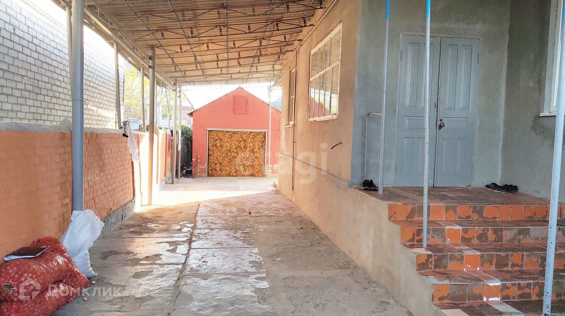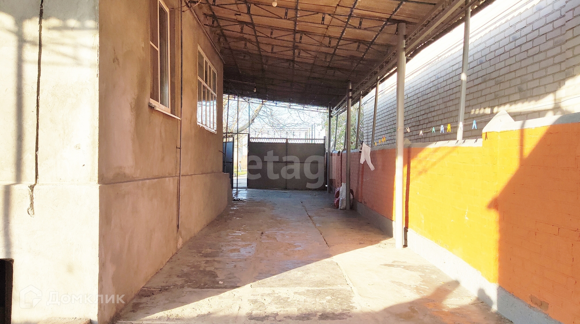 Широкий двор полностью забетонирован, и накрыт навесом.