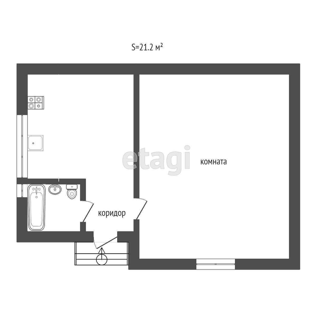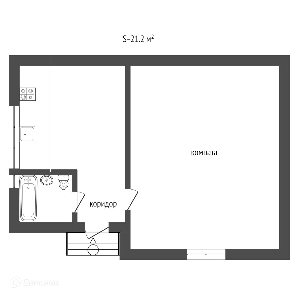 Общая площадь 21.2 м2