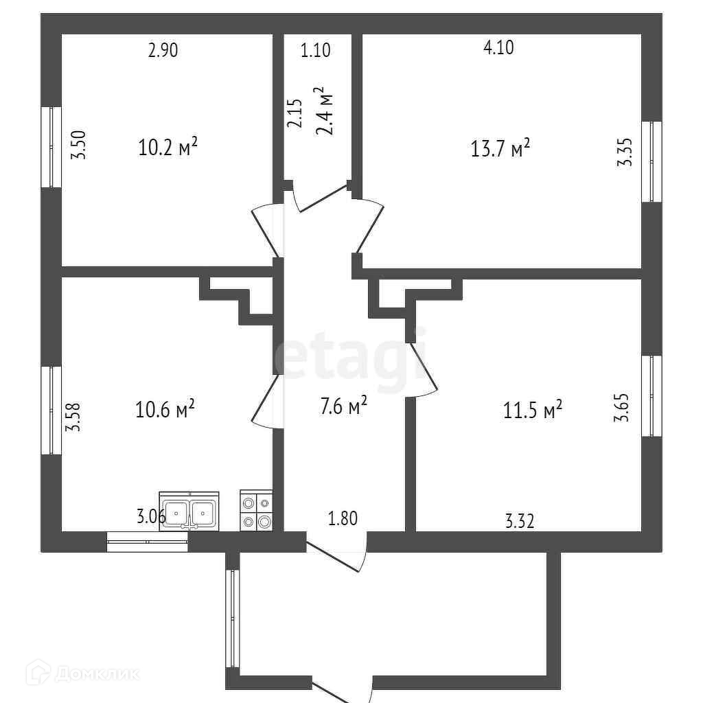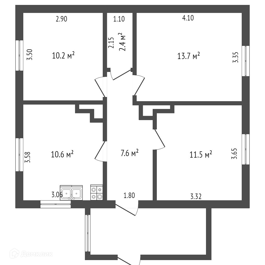 В доме имеются две прихожие комнаты, спальня и зал, кухня общей площадью 10.6 кв.м, также установлены все счетчики.