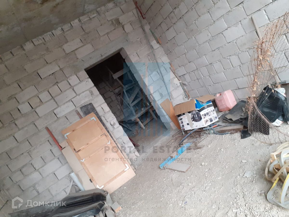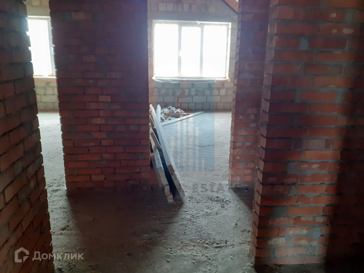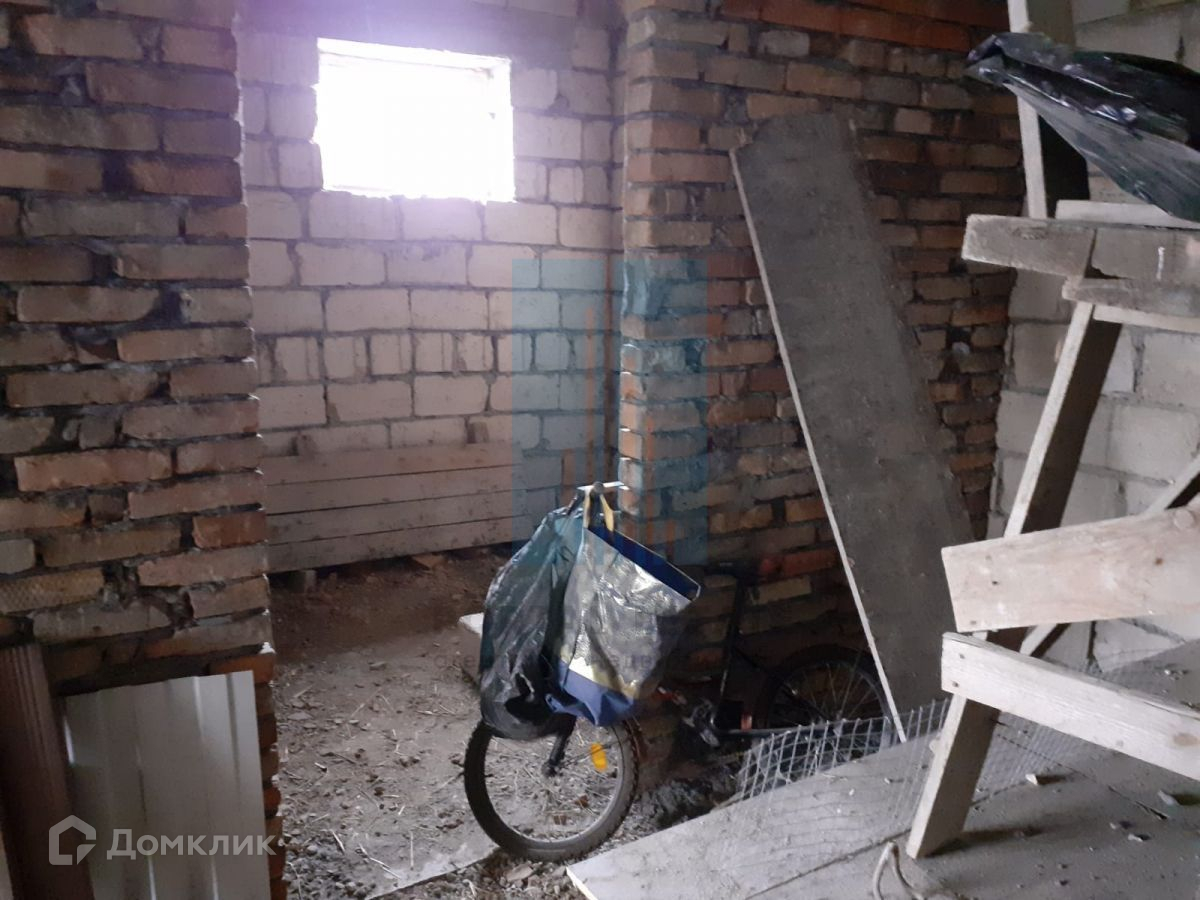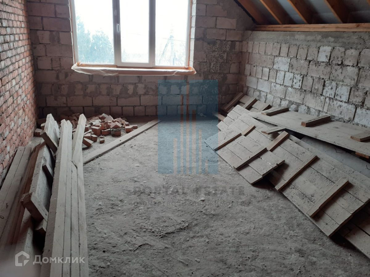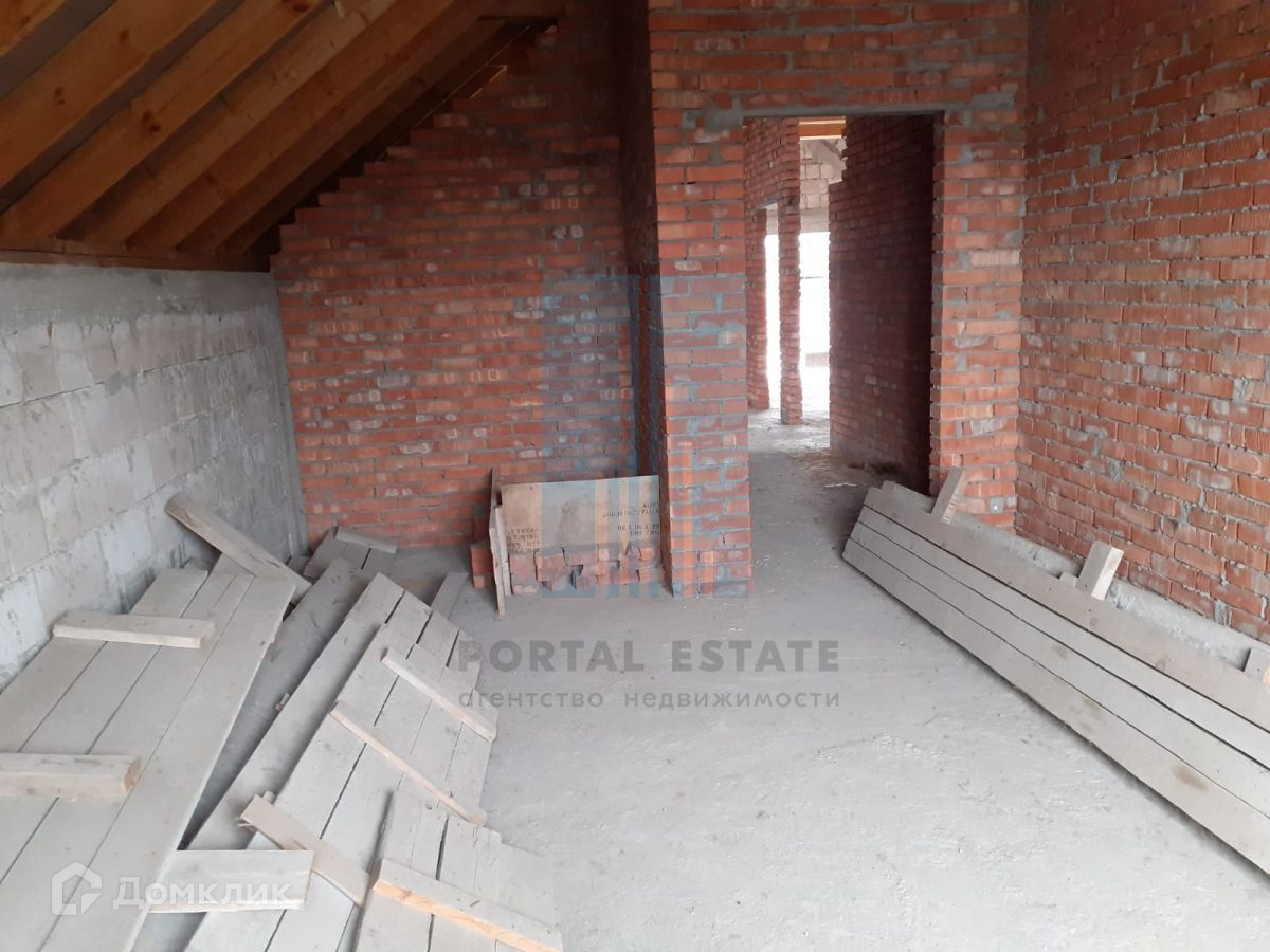 В начале участка с выходом на улицу, построен двухэтажный дом 173 кв.м. Дом не достроен: возведены стены -теплоблок (толщина 40 см), перекрытия - монолит (толщина 20 см), внутренние перегородки - кирпич, окна - пластик. Между этажами монолитная бетонная лестница. Фундамент монолитный. Первый этаж планировался под бизнес (салон красоты),  выделено место под гараж, санузел.  Второй этаж имеет три комнаты, кухню, санузел. Имеется разрешение на строительство 2016г, дом строился по проекту.