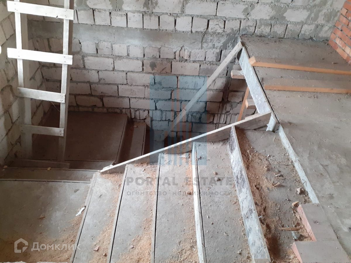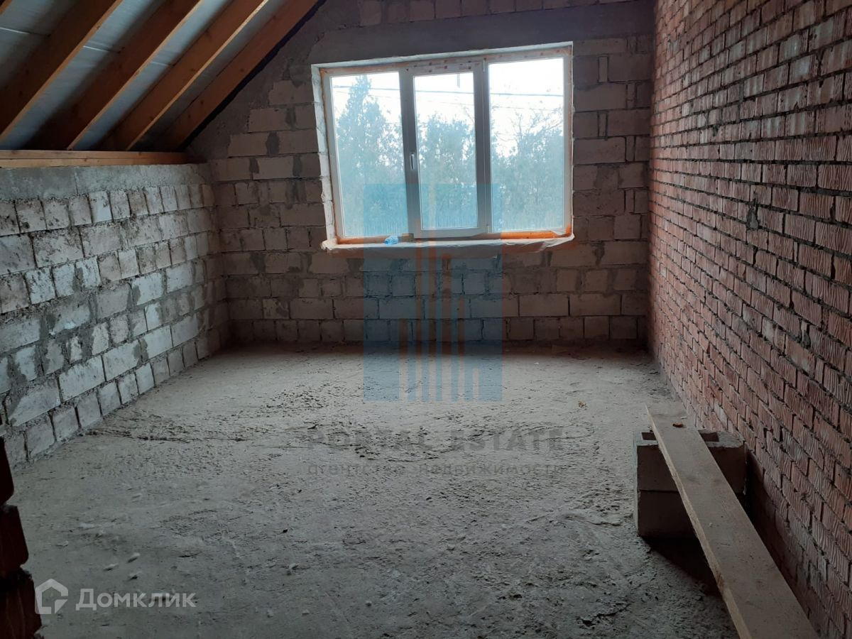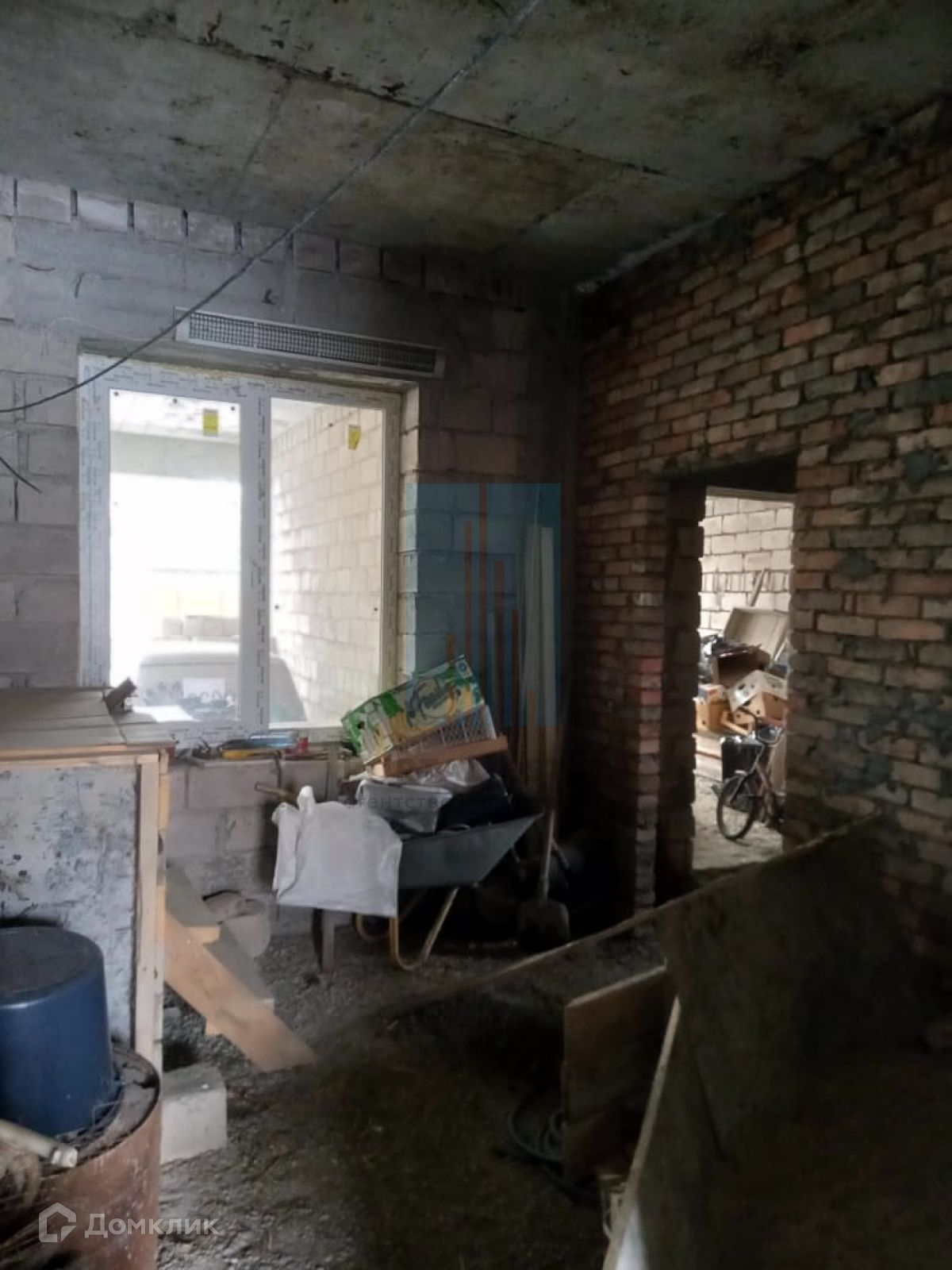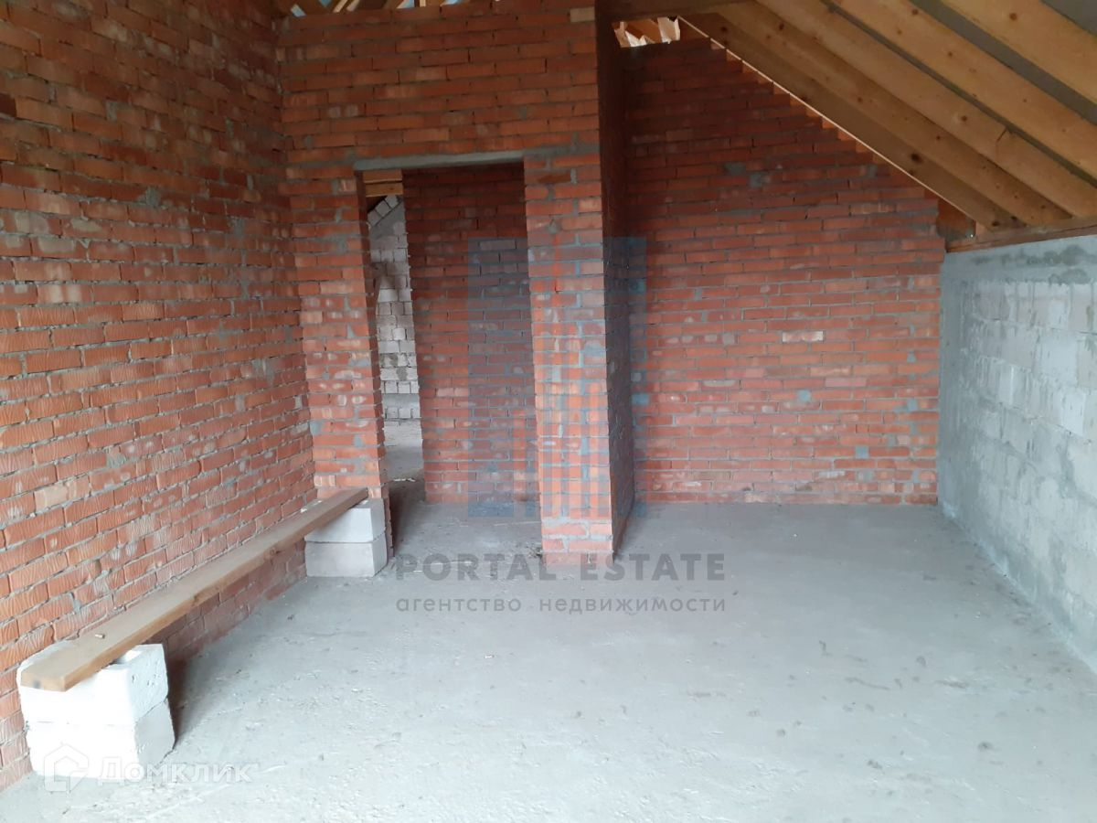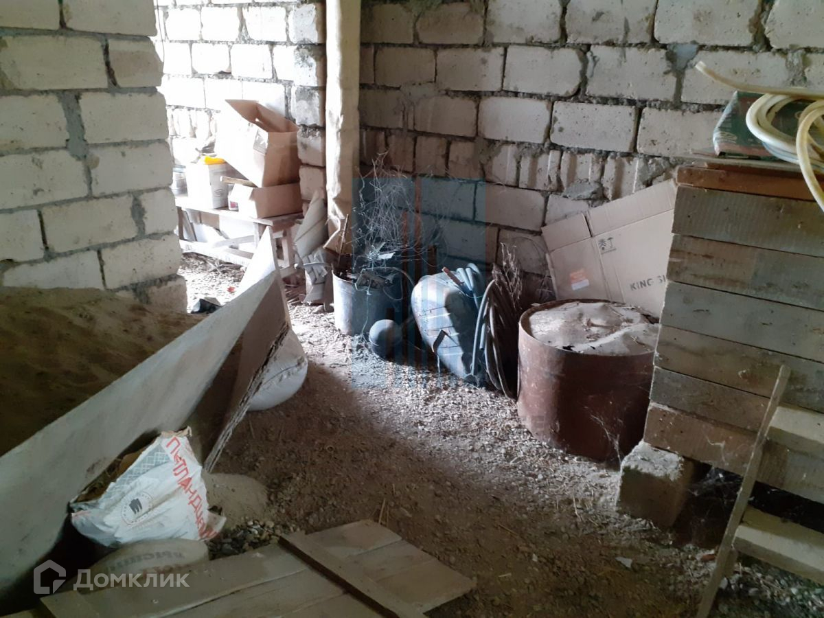 В начале участка с выходом на улицу, построен двухэтажный дом 173 кв.м. Дом не достроен: возведены стены -теплоблок (толщина 40 см), перекрытия - монолит (толщина 20 см), внутренние перегородки - кирпич, окна - пластик. Между этажами монолитная бетонная лестница. Фундамент монолитный. Первый этаж планировался под бизнес (салон красоты),  выделено место под гараж, санузел.  Второй этаж имеет три комнаты, кухню, санузел. Имеется разрешение на строительство 2016г, дом строился по проекту.