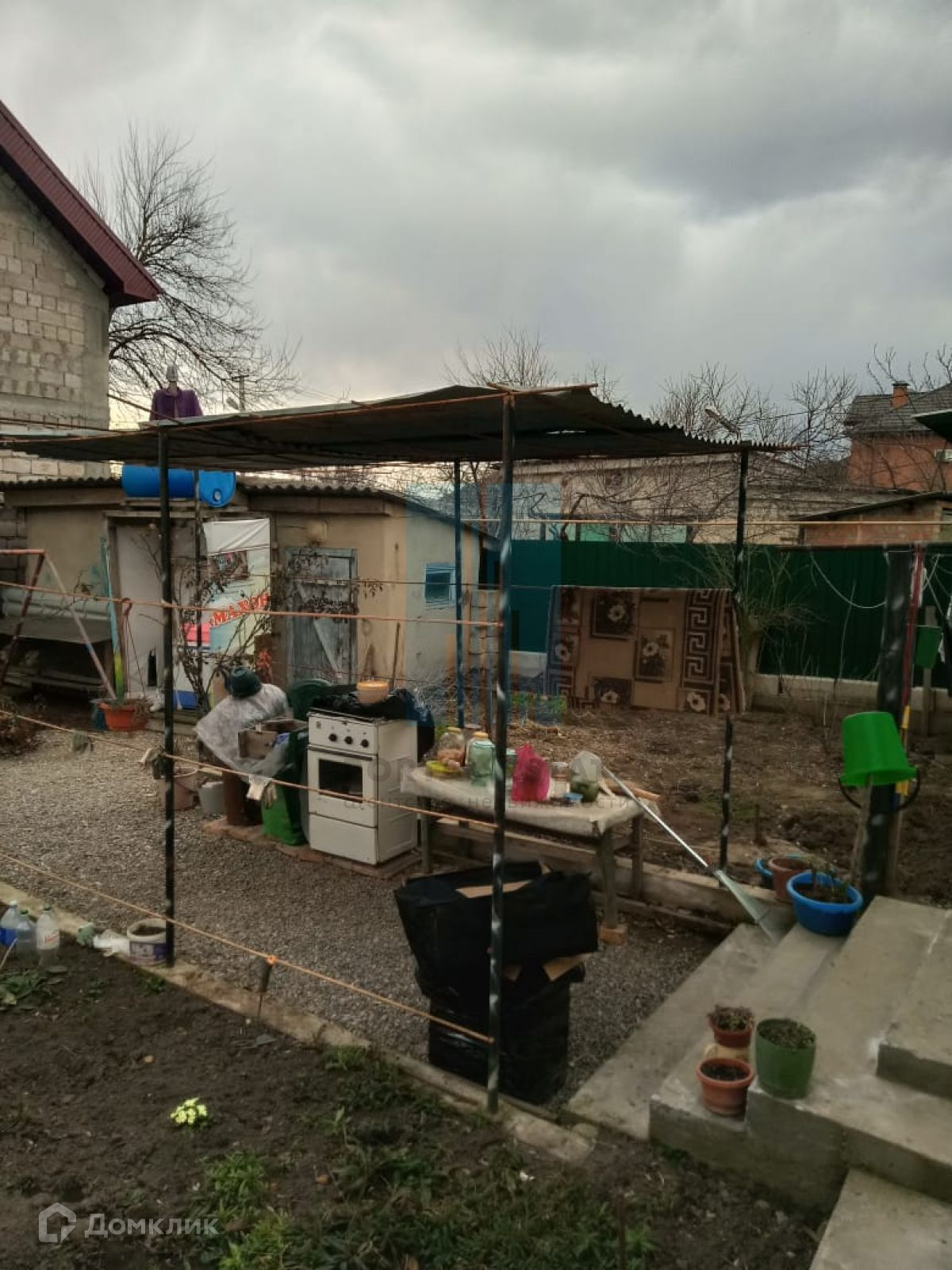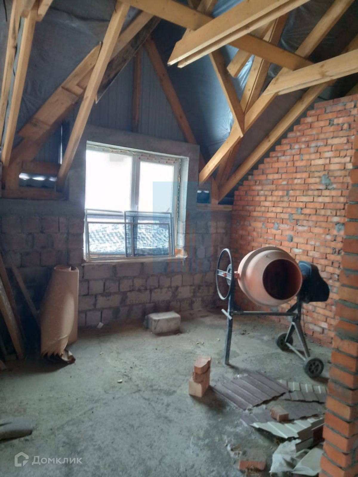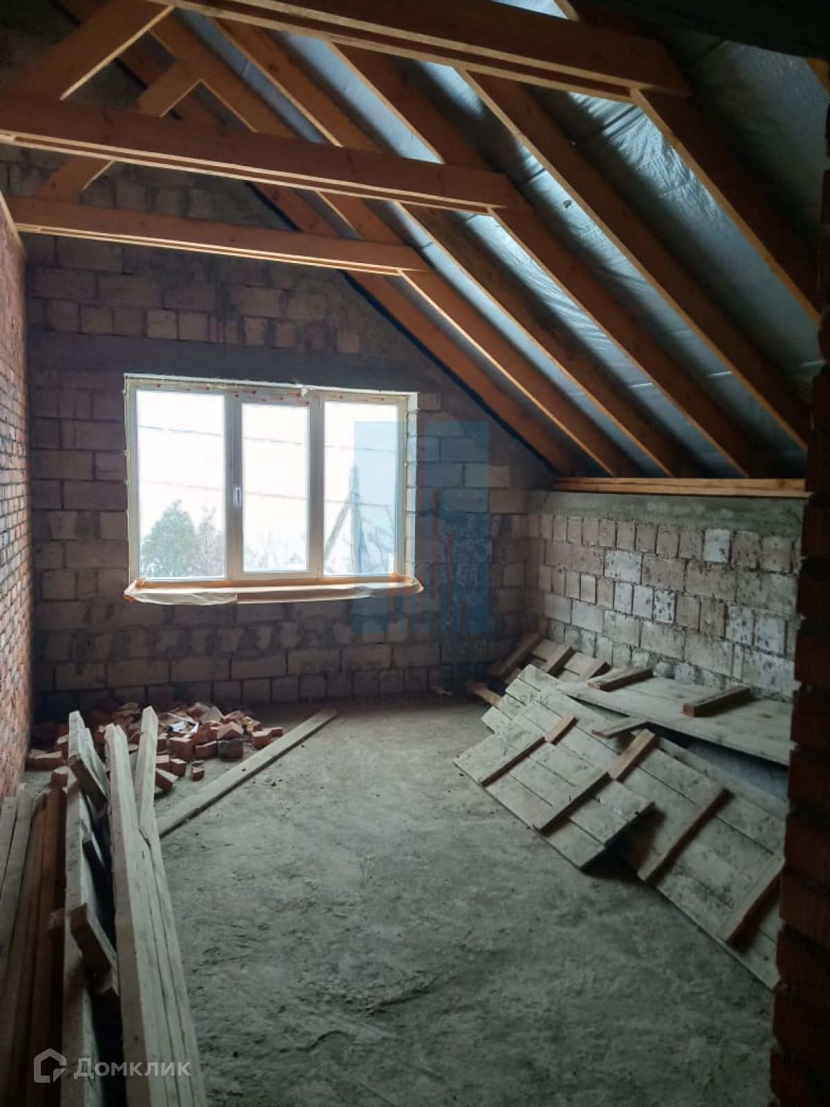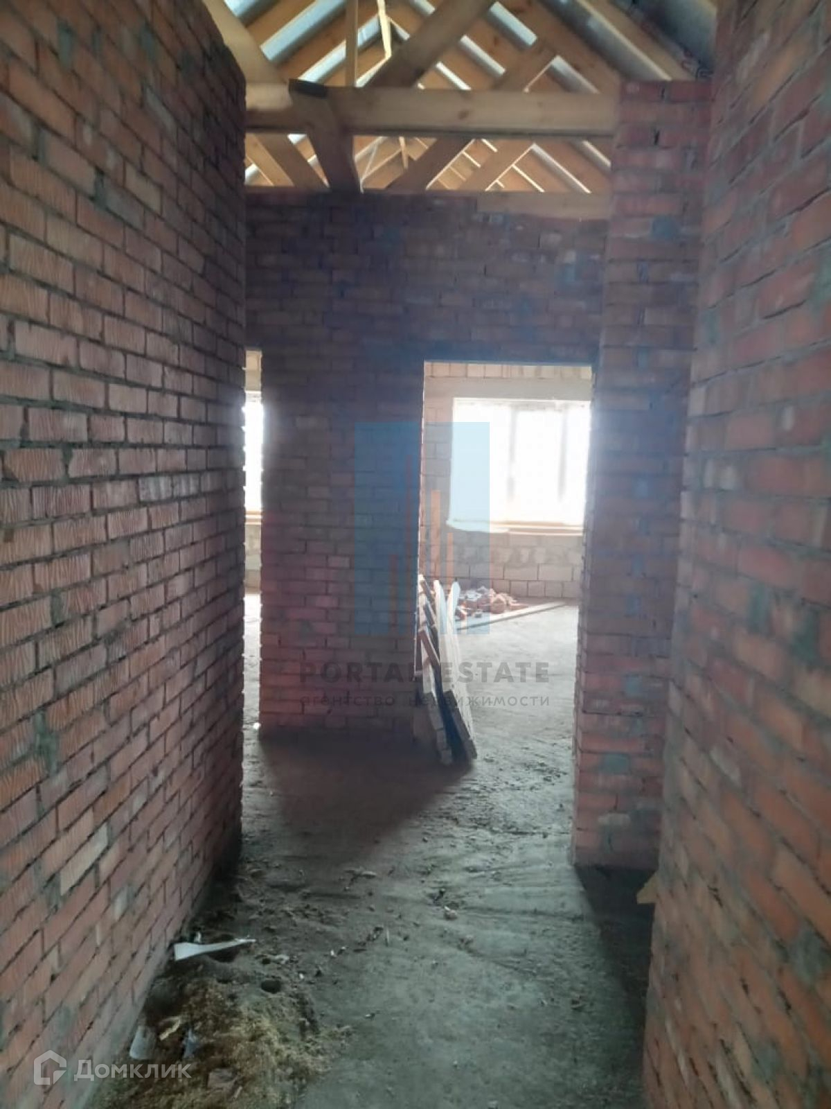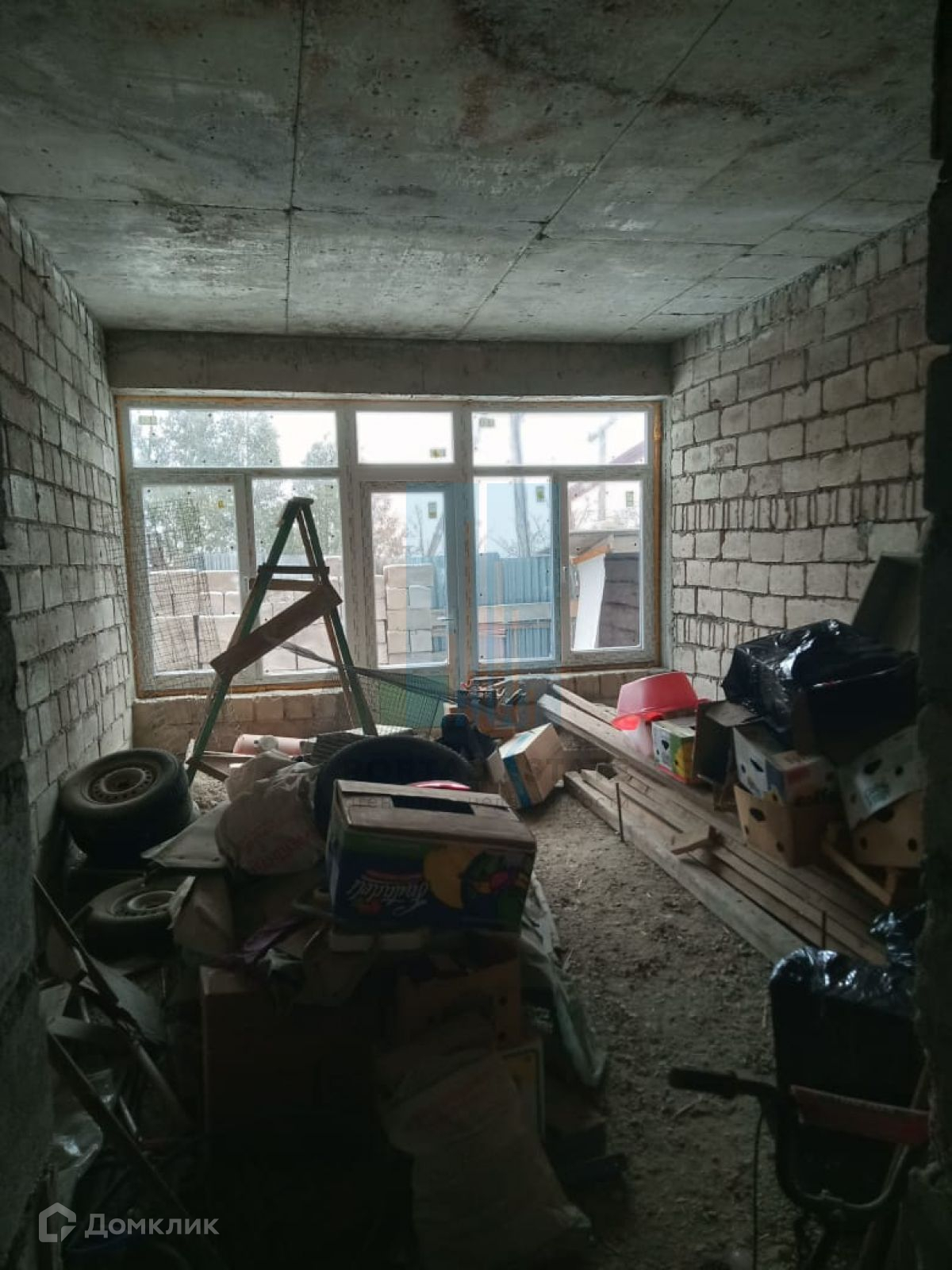В начале участка с выходом на улицу, построен двухэтажный дом 173 кв.м. Дом не достроен: возведены стены -теплоблок (толщина 40 см), перекрытия - монолит (толщина 20 см), внутренние перегородки - кирпич, окна - пластик. Между этажами монолитная бетонная лестница. Фундамент монолитный. Первый этаж планировался под бизнес (салон красоты),  выделено место под гараж, санузел.  Второй этаж имеет три комнаты, кухню, санузел. Имеется разрешение на строительство 2016г, дом строился по проекту.