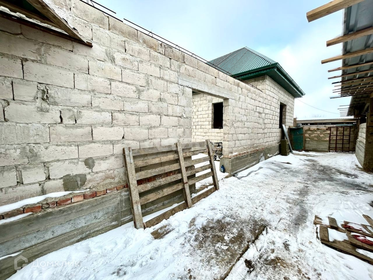 На участке находятся 2 здания, 1 здание недостроенное.