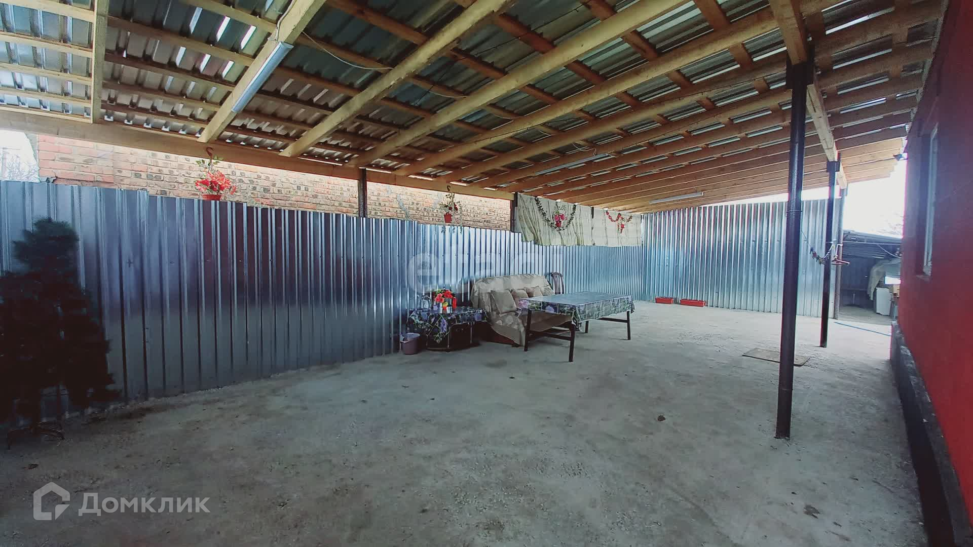 Двор просторный, полностью забетонирован. Спокойно вместит 2 машины. Сделали капитальный навес из новой древесины и качественного профнастила.