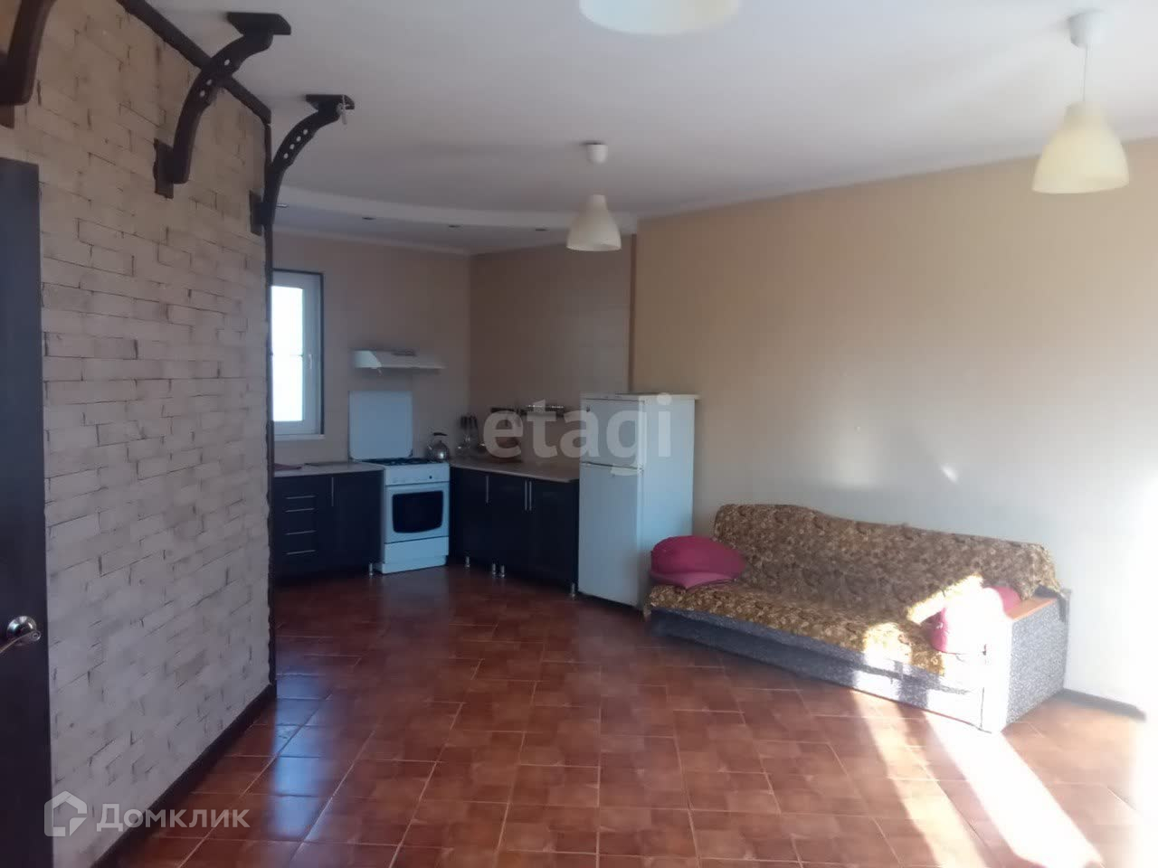 На полу - частично плитка и ламинат.