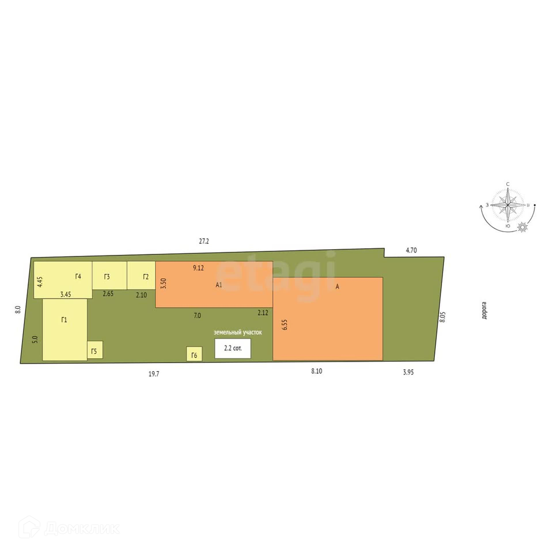 Площадь участка 2.2 сот.