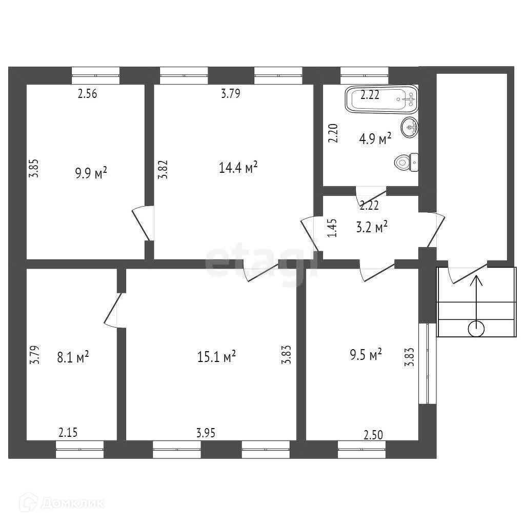 Общая площадь 64.9 м2