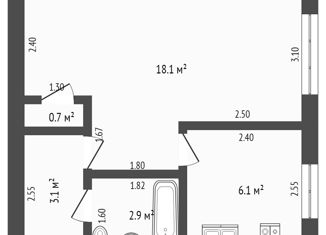 Общая площадь: 30.9 м2
