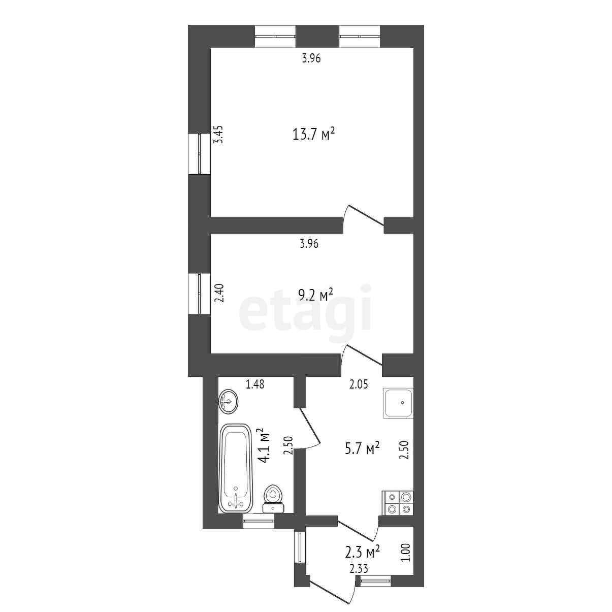 Общая площадь 35.4 м2