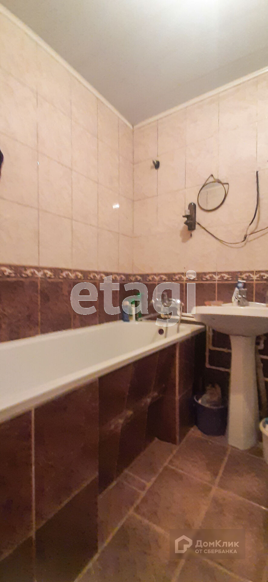 Санузел совмещенный, отделан кафельной плиткой. Окна (одно пластиковое, второе-дерево) с решетками с наружной стороны.