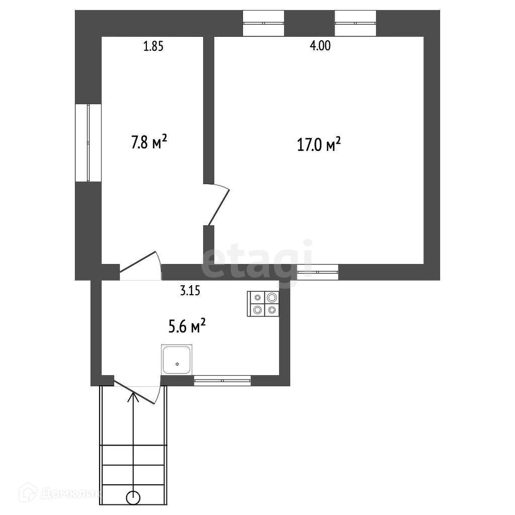 2-комнатная квартира, 30.4 м2, этаж 1 / 1, на продажу в Прохладном, Пролетарская улица, 25