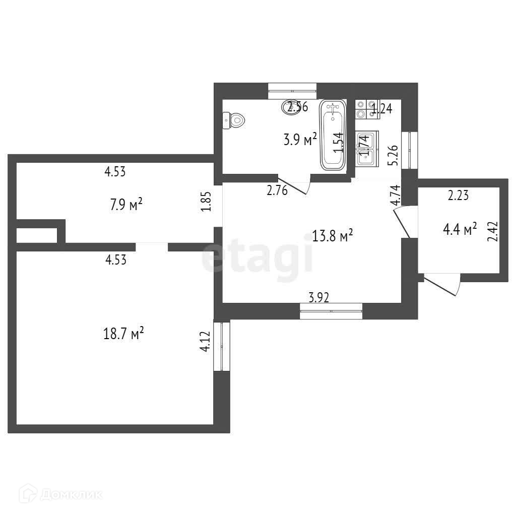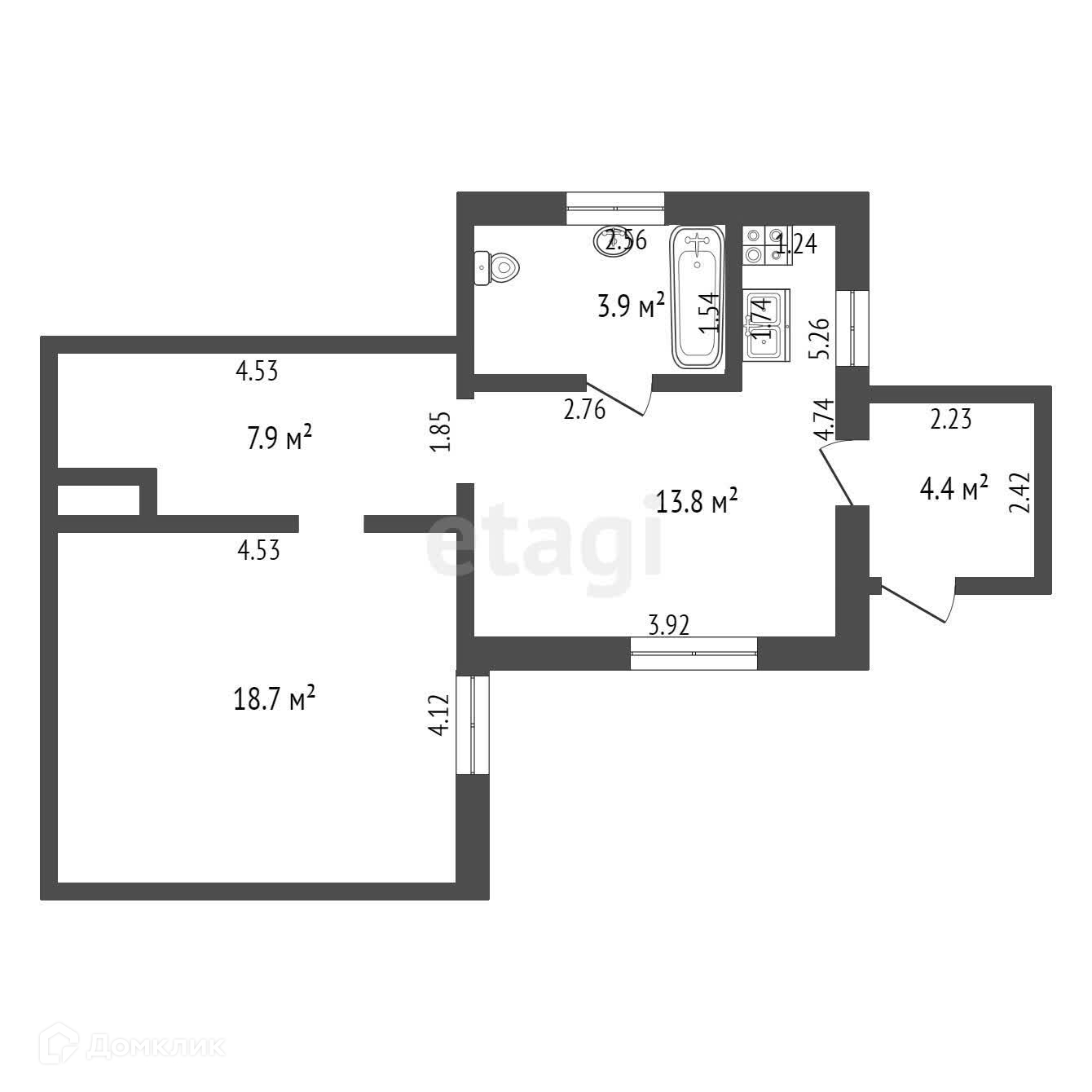 Общая площадь 44.3 м2