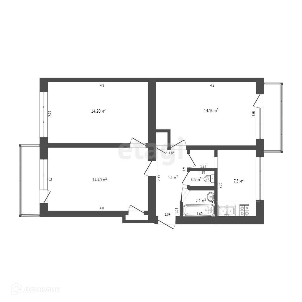 Общая площадь 59.2 м2