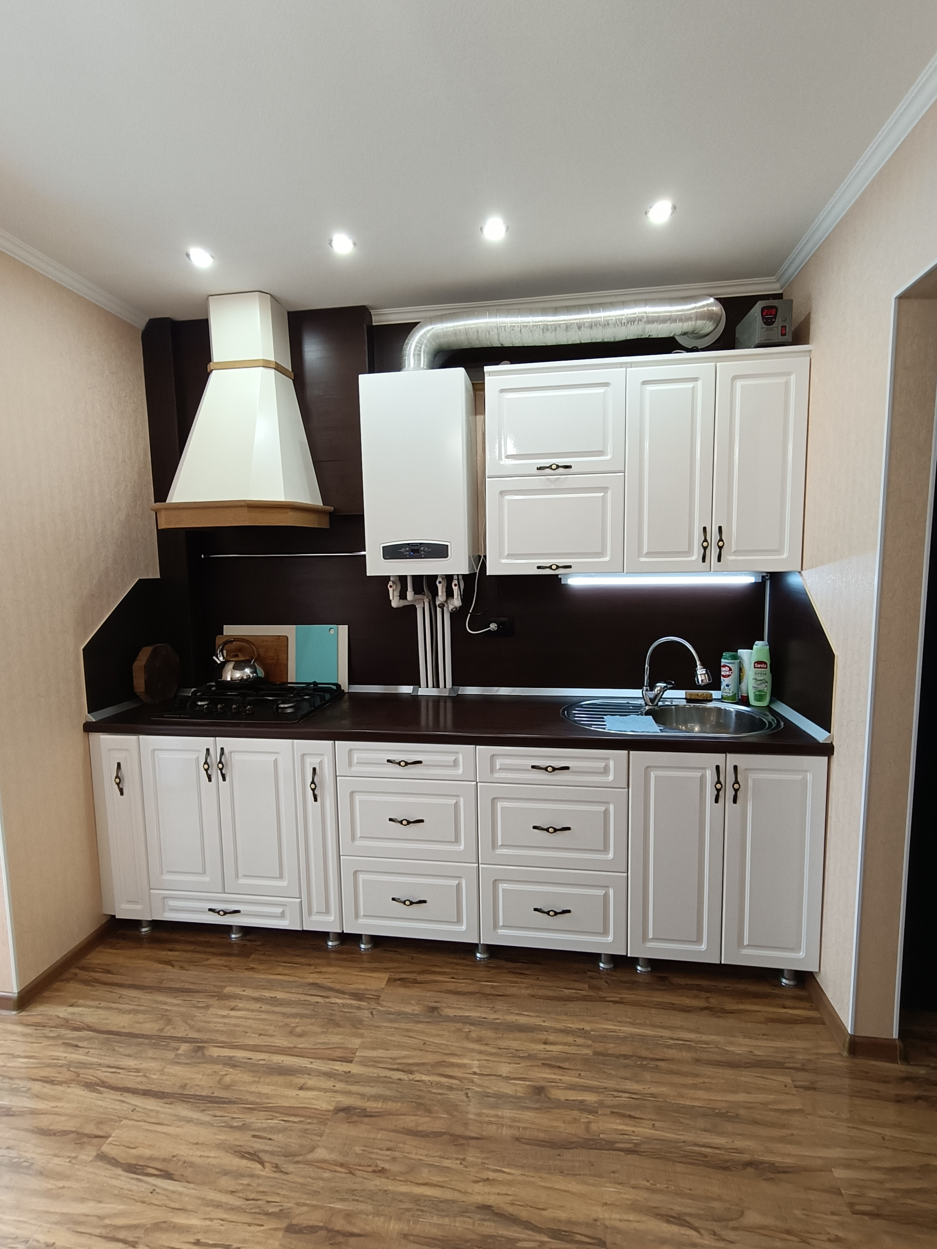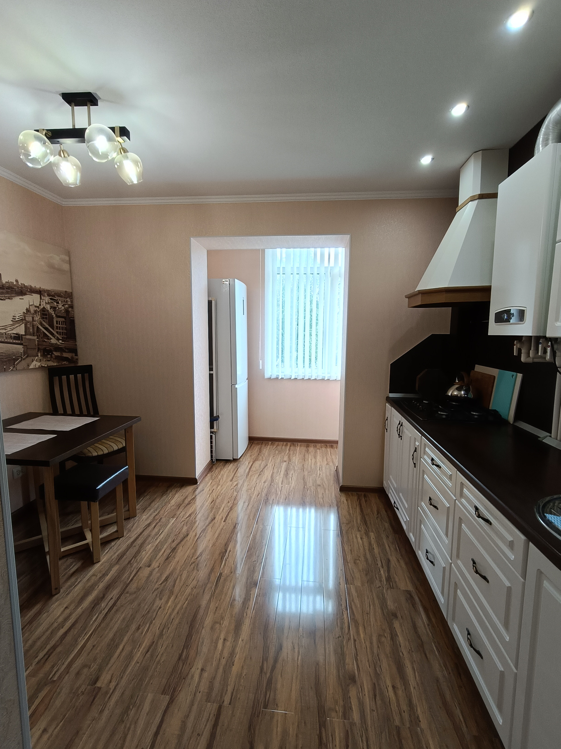 Просторная кухня, с современной встроенной мебелью и техникой (новый холодильник Haier, плита газовая Zigmund&Shtain, встроенная посудомойка Weissgauff);