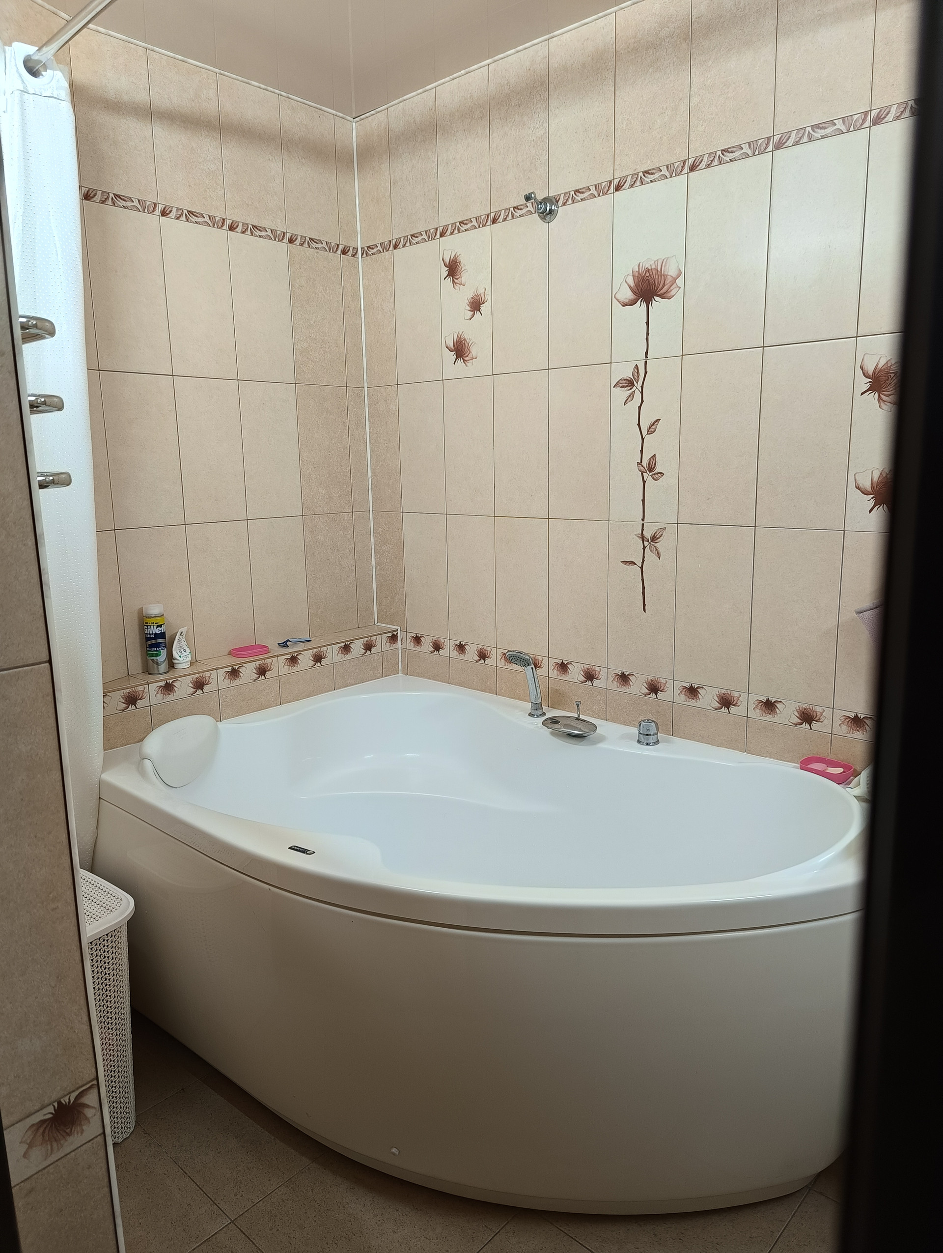 Ванная комната с большой ванной по типу джакузи.