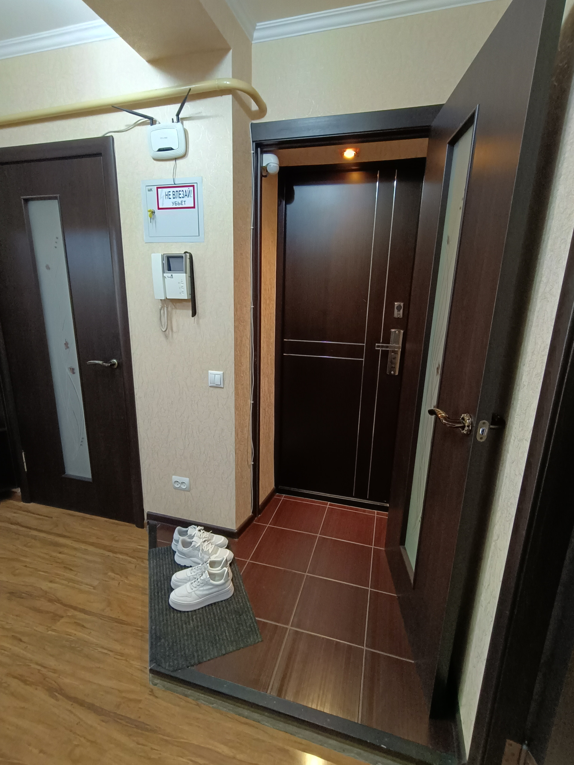 Установлена надежная входная дверь с видеозвонком.