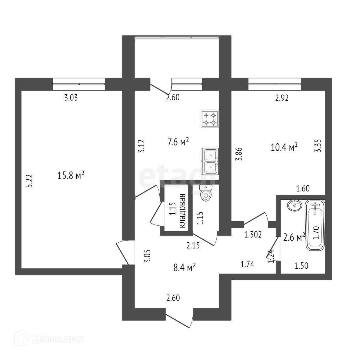 Общая площадь 46.6 м2